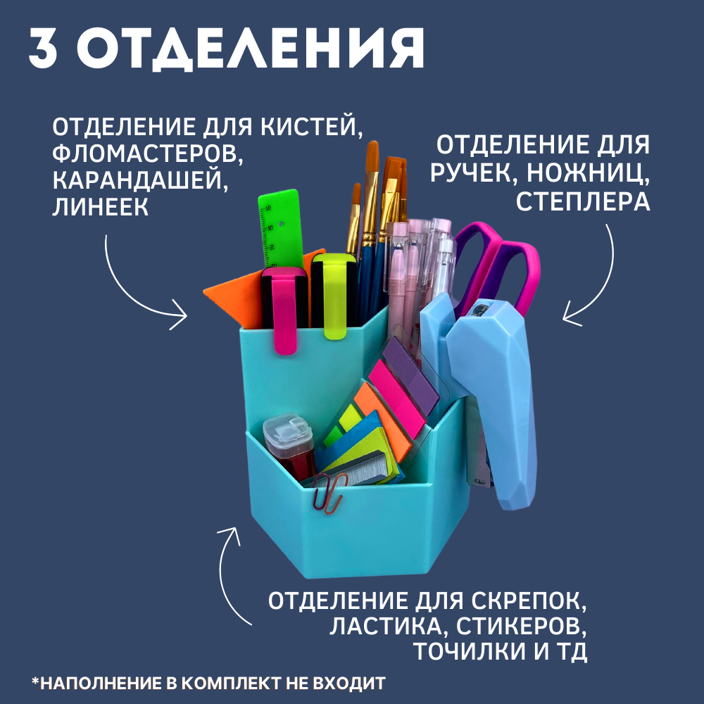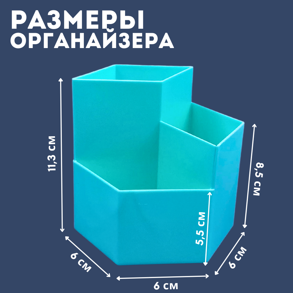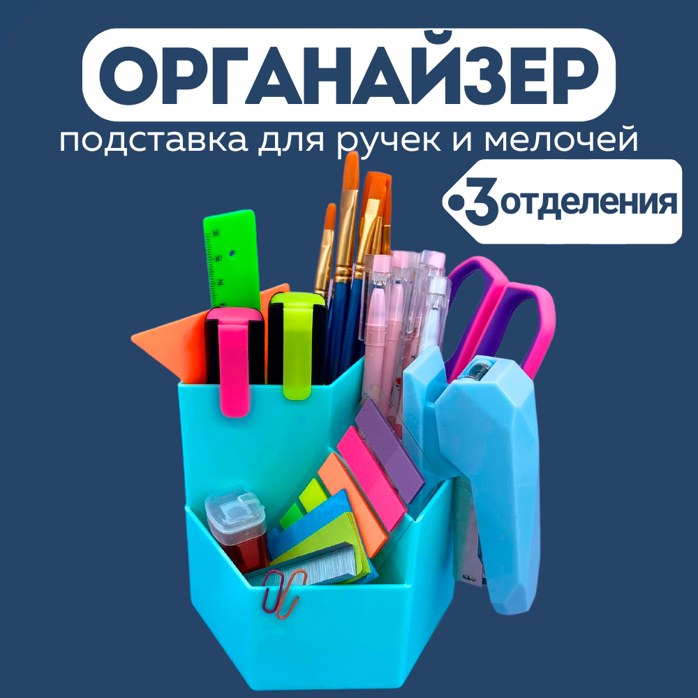 Органайзер для хранения канцелярии подставка для карандашей и ручек 6 отделений, синий
