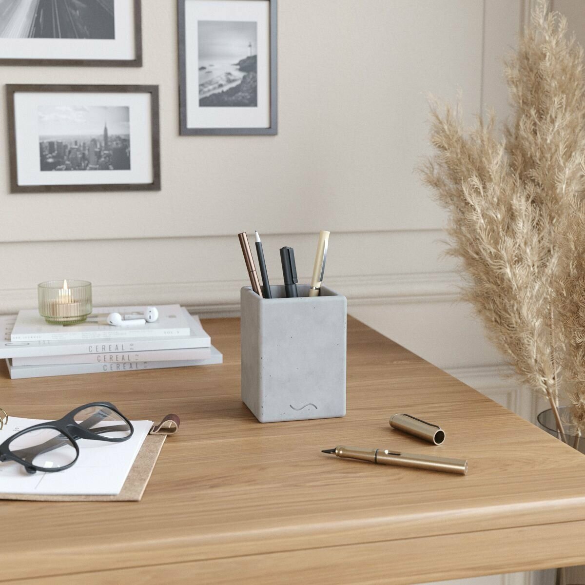 Стакан канцелярский Emily, подставка для ручек и карандашей, 11х8х8 см, бетон, серый глянцевый