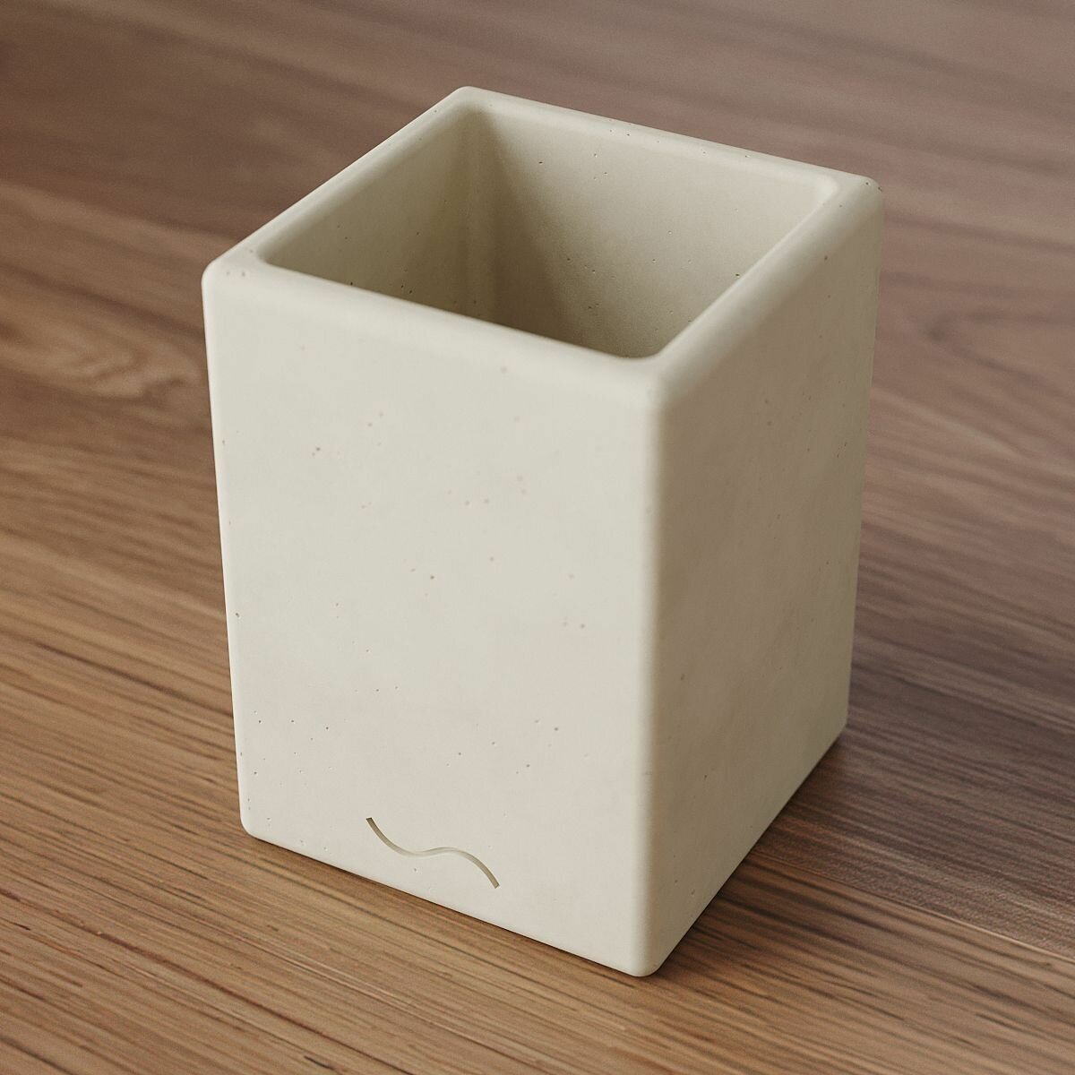 Стакан канцелярский Emily, подставка для ручек и карандашей, 11х8х8 см, бетон, кремовый глянцевый