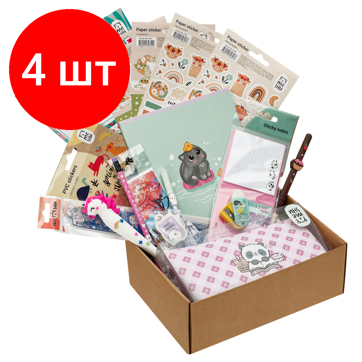 Купить Комплект 4 шт, Набор канцелярских принадлежностей подарочный MESHU "Sweety", 20 предметов