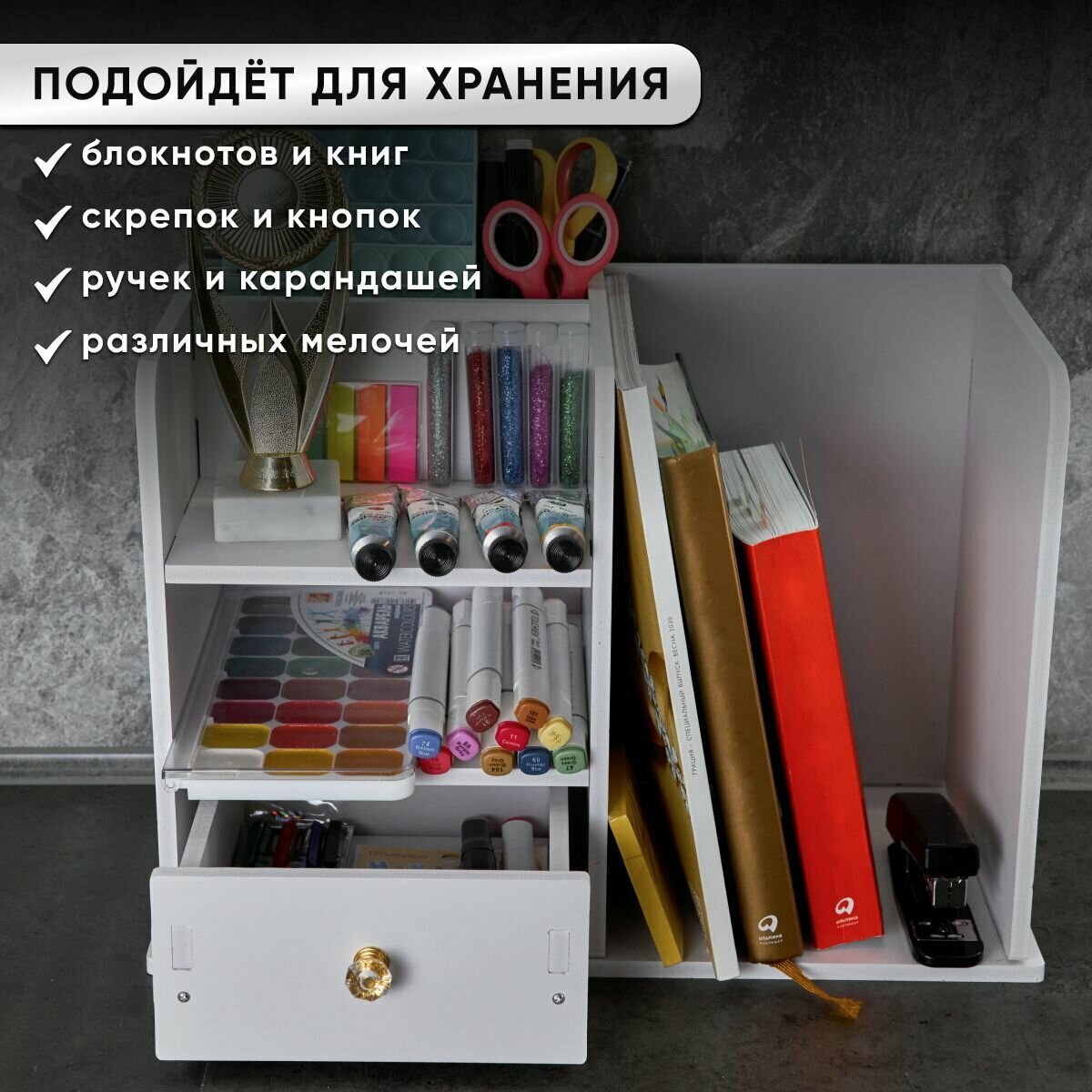 Органайзер для книг OQQI, настольный, подставка канцелярская интересное: