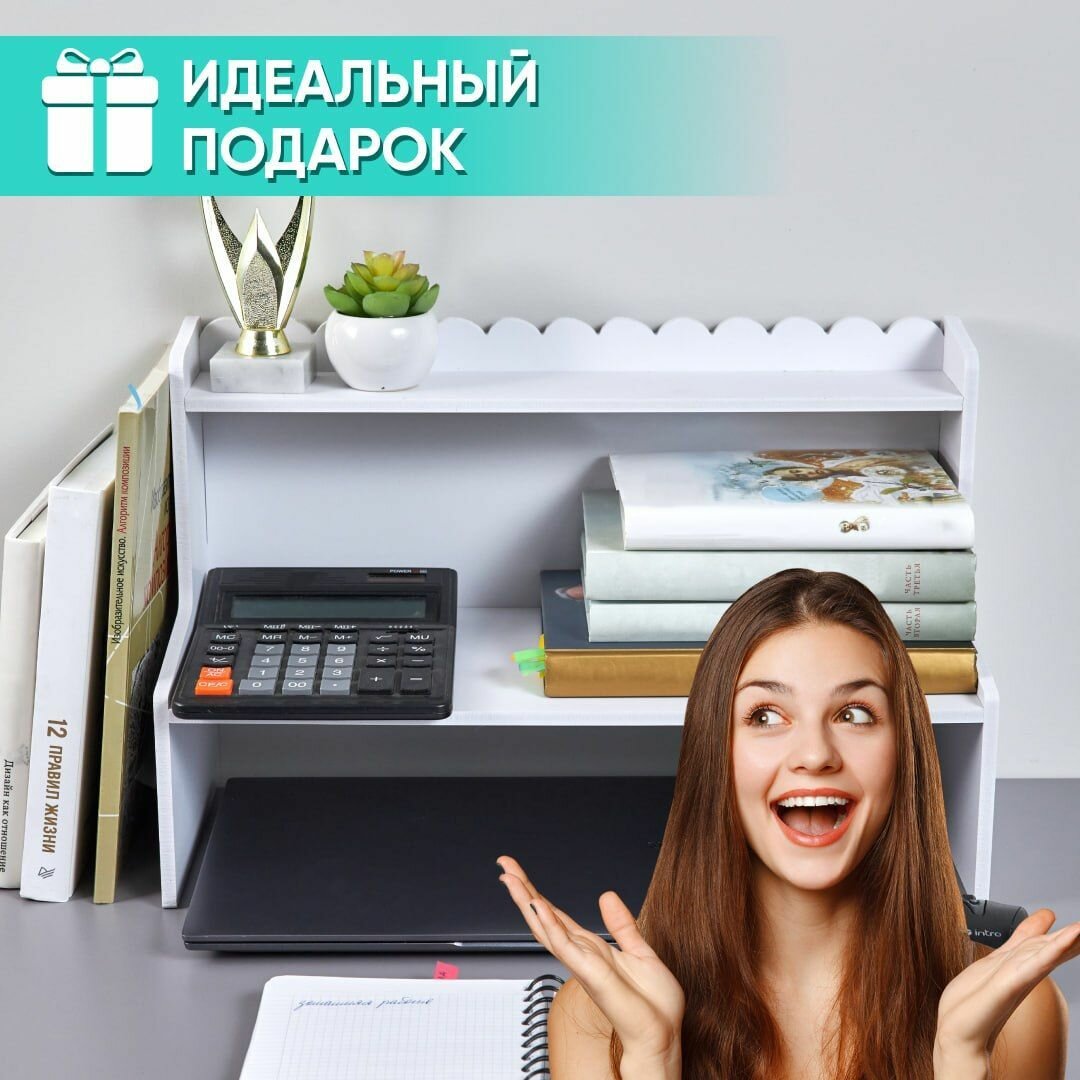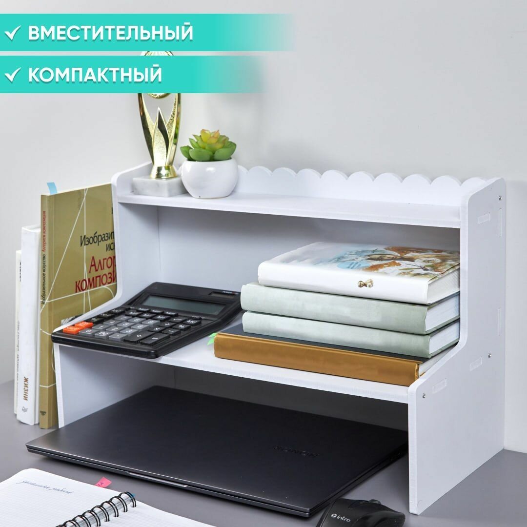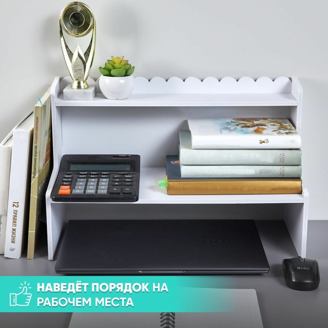 Купить Органайзер для канцелярии OQQI, настольный, белый, полка для книг и тетрадей