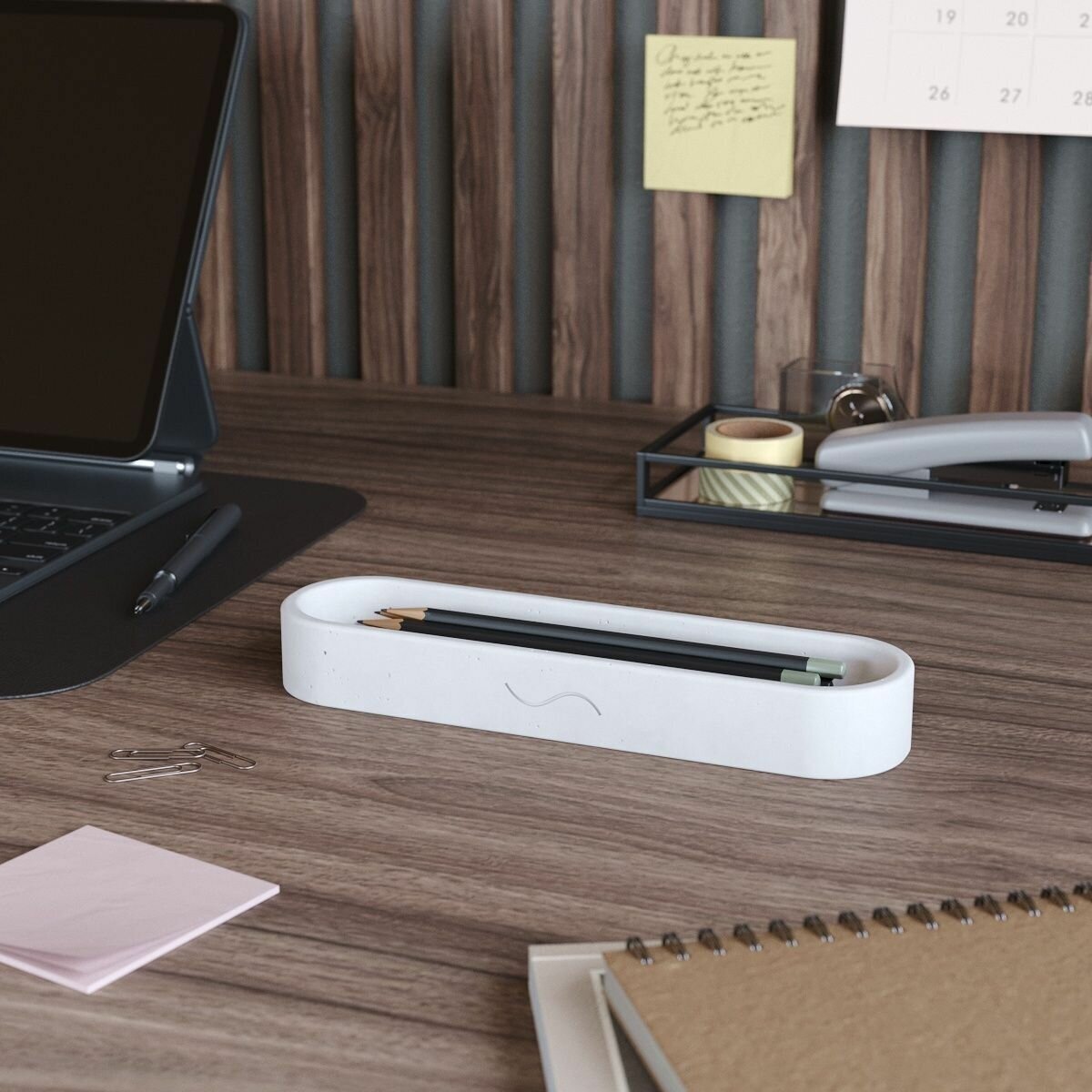 Канцелярская подставка для ручек Oliver, 22х6х3 см, бетон, серая, матовая