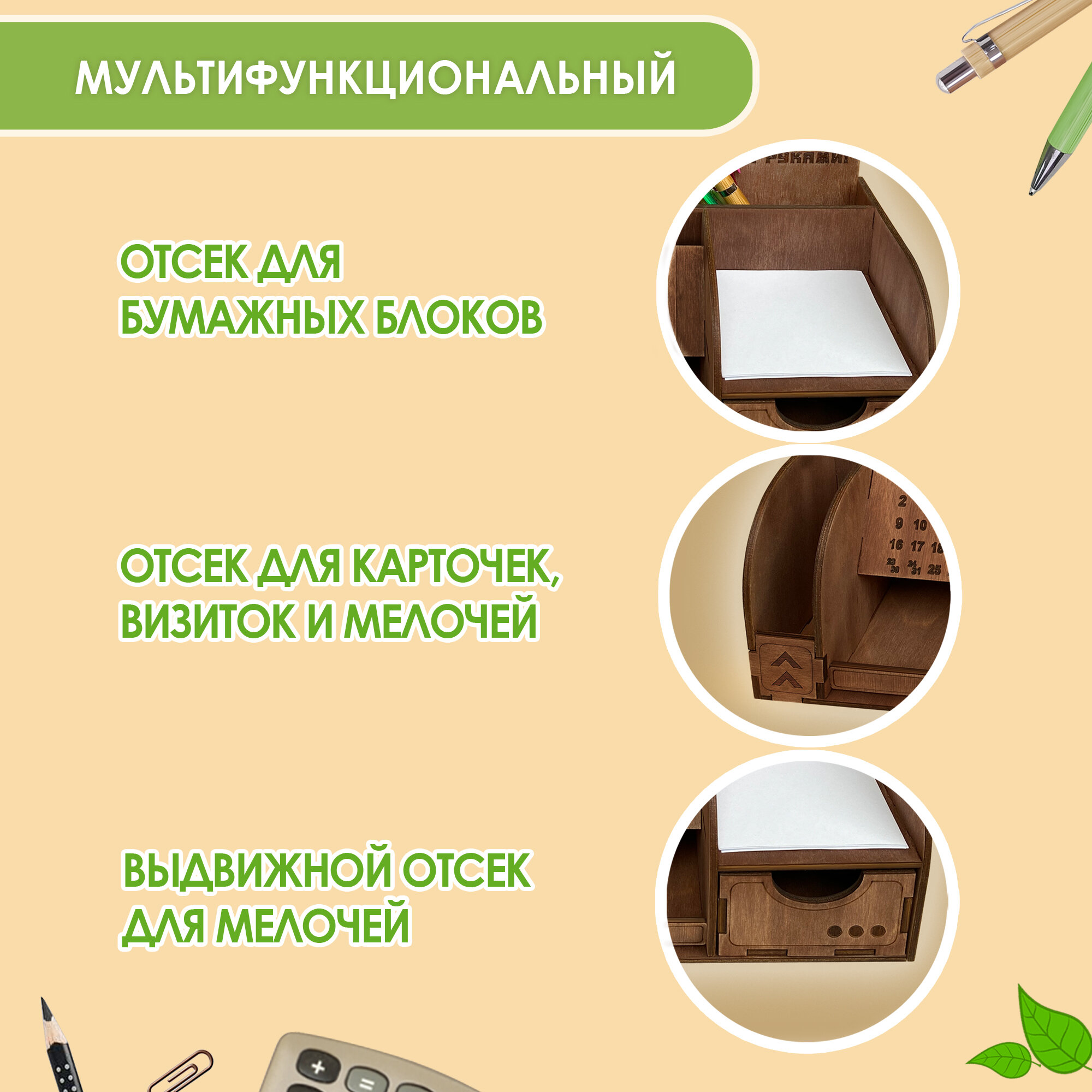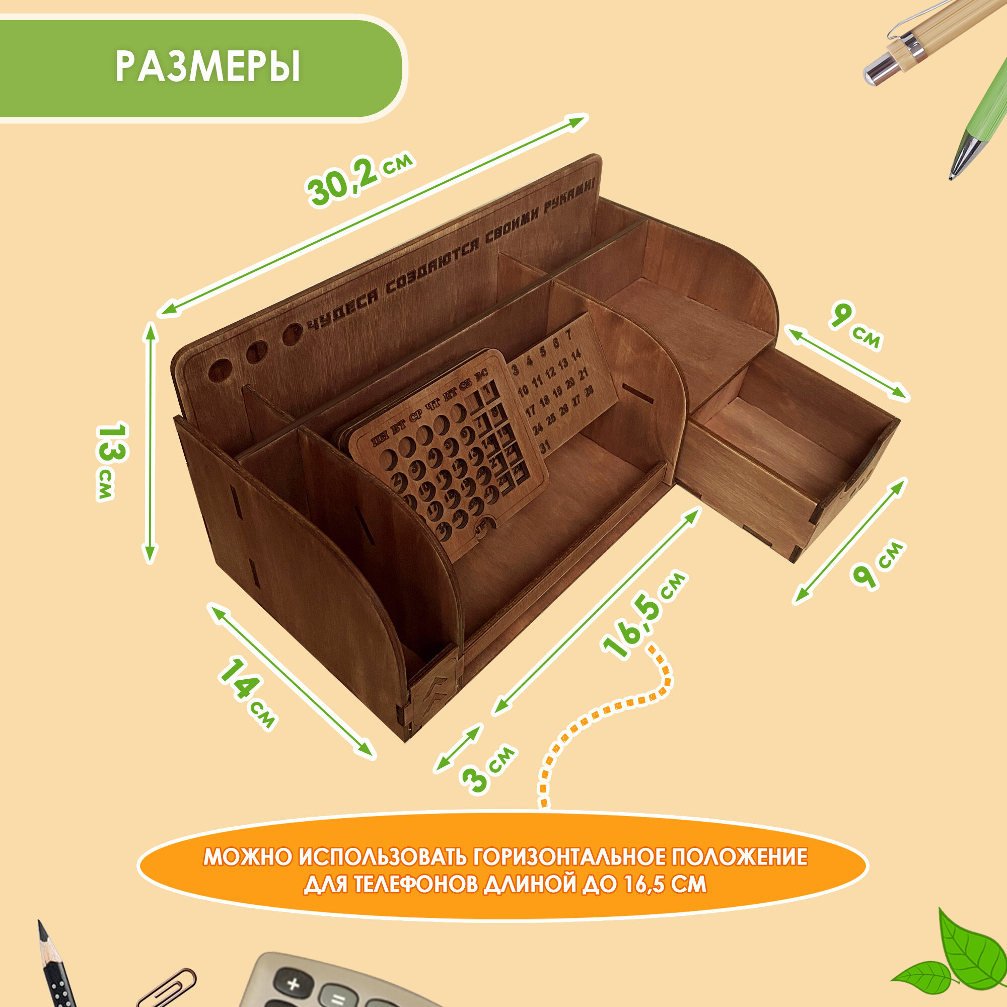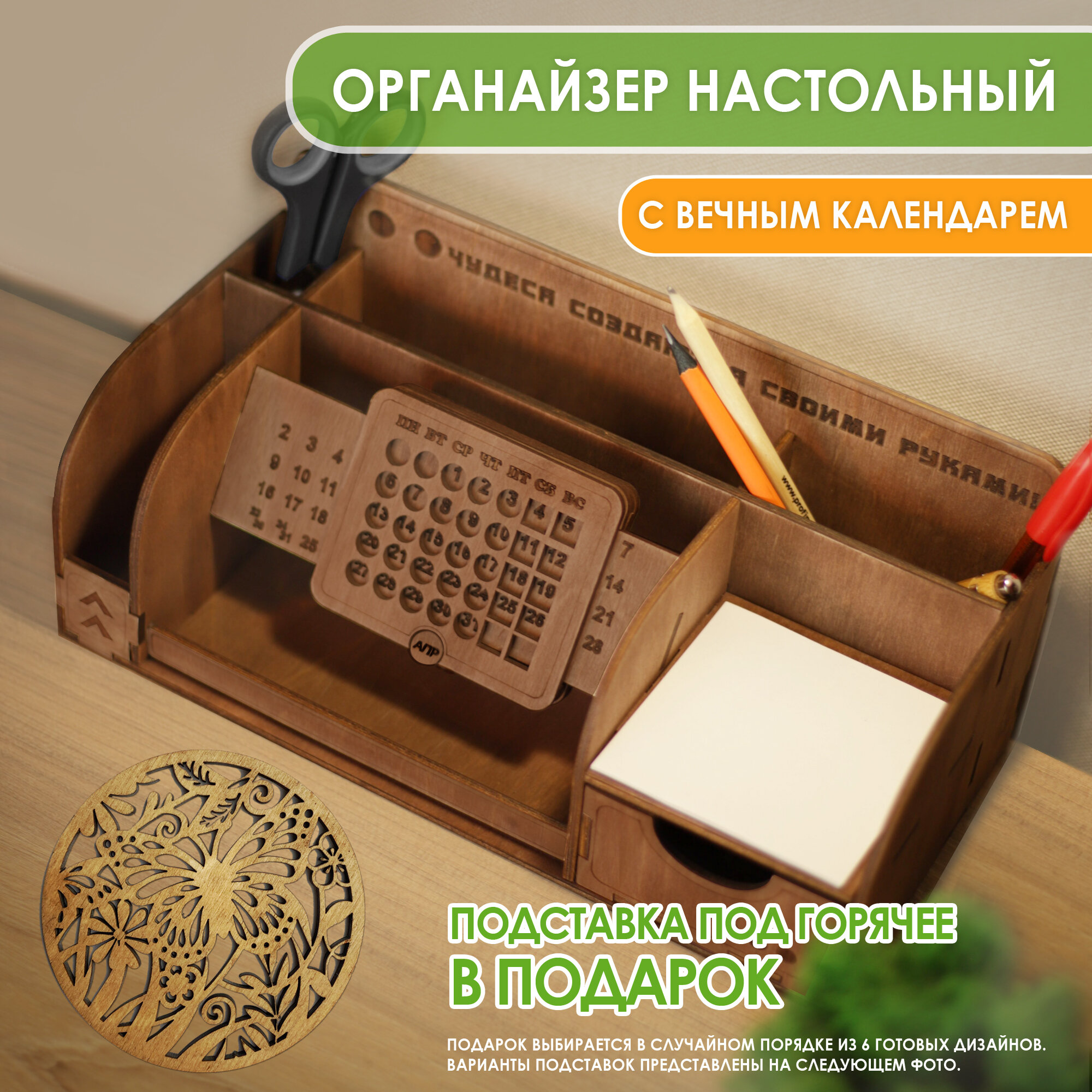 Органайзер для канцелярии Woodenking настольный деревянный с вечным календарем для карандашей и ручек "Темный дуб" интересное:
