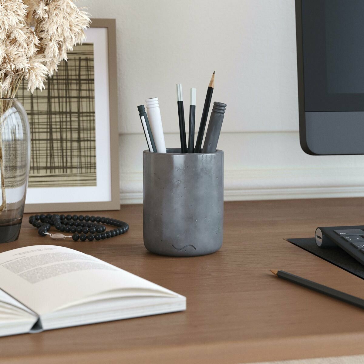 Стакан канцелярский Astrid, 9x11 см, бетон, серый глянцевый