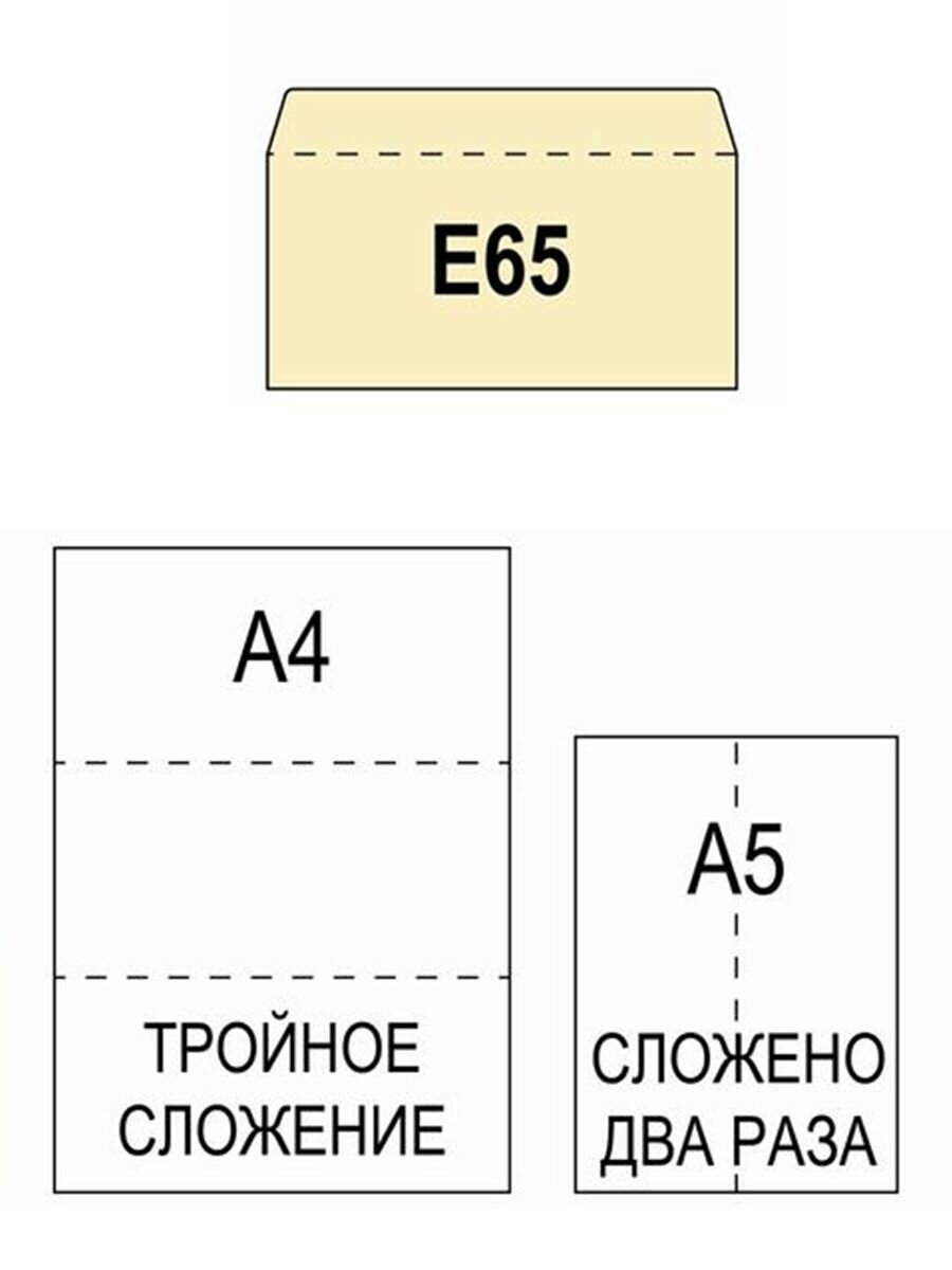 Почтовые конверты бумажные Е65 (110х220мм) 100 шт. отрывная лента, запечатка, белые для документов E65