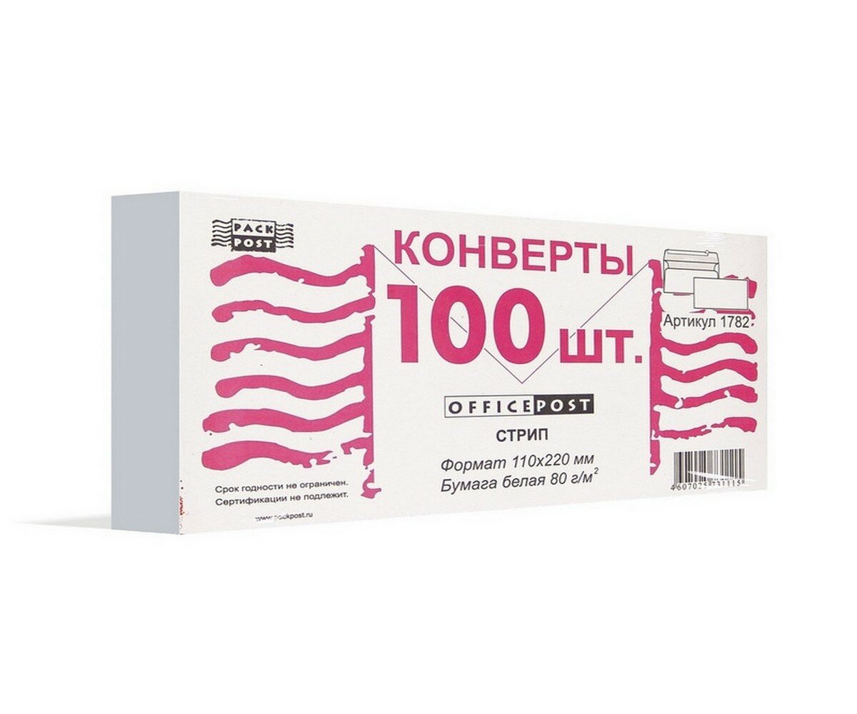 Конверт белый E65 стрип OfficePost 110х220 100шт/уп/1782 интересное: