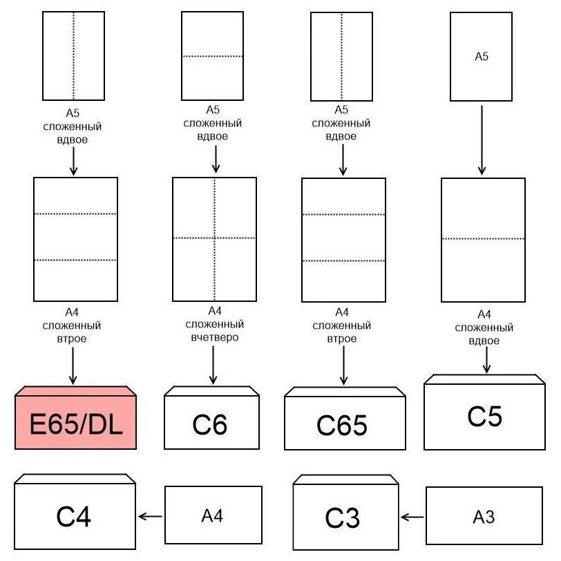 Конверты в упаковке DL(110*220мм) литер А, 10шт./уп