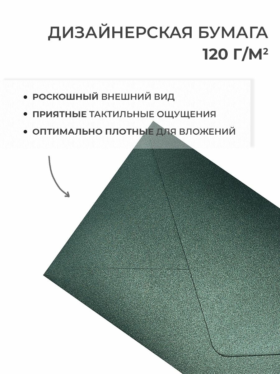 СохранитьНабор конвертов для денег Е65 (110х220мм)/ Конверты подарочные из дизайнерской бумаги темно зеленый с блеском 10 шт. интересное: