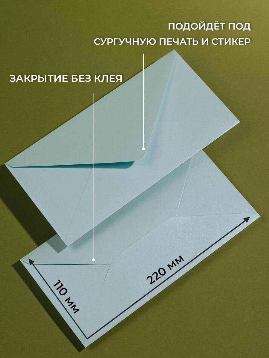 СохранитьНабор конвертов для денег Е65 (110х220мм)/ Конверты подарочные из дизайнерской бумаги голубой с блеском 10 шт. интересное: