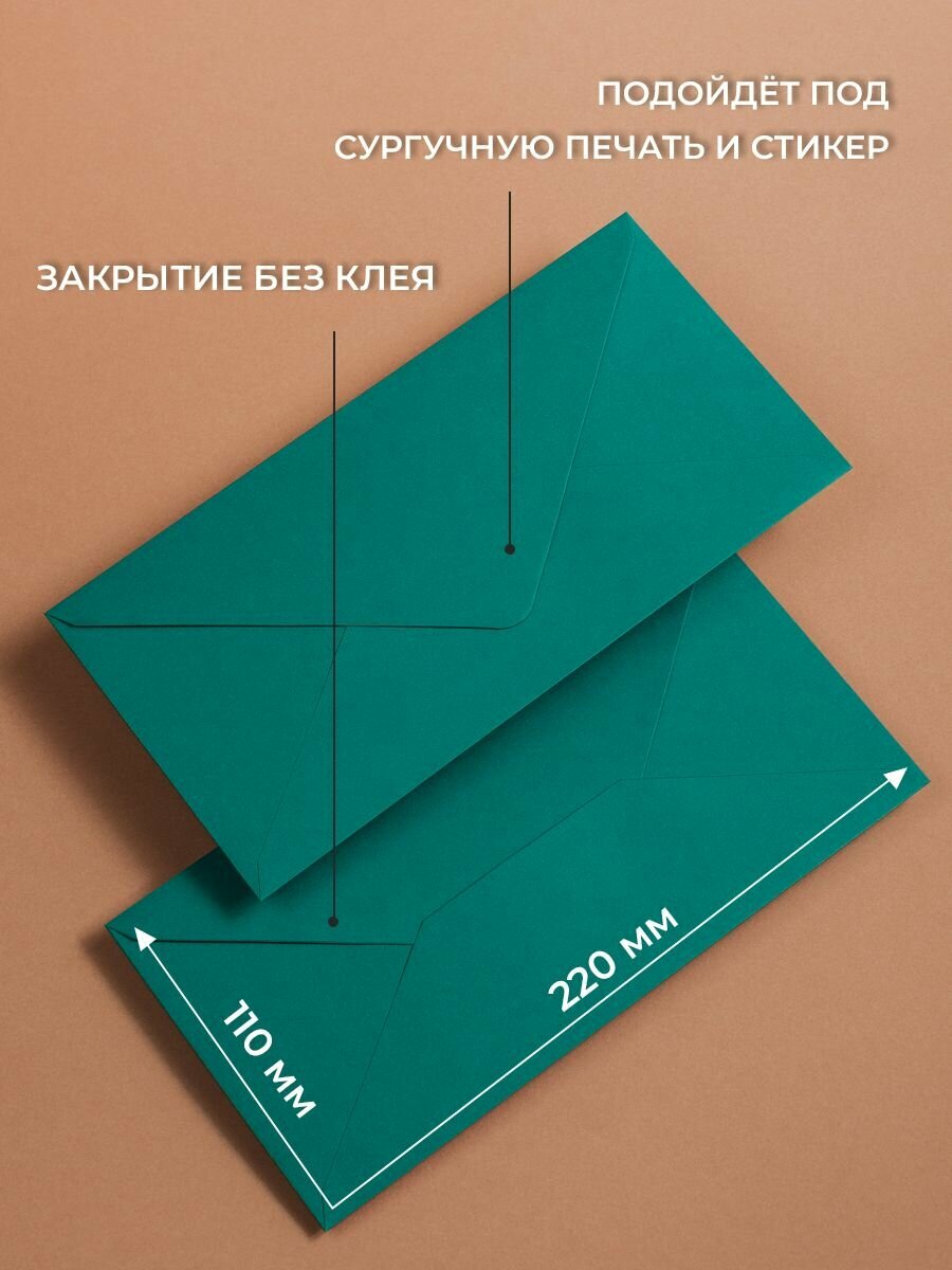 Набор конвертов для денег Е65 (110х220мм)/ Конверты подарочные из дизайнерской бумаги нефритовый 10 шт.