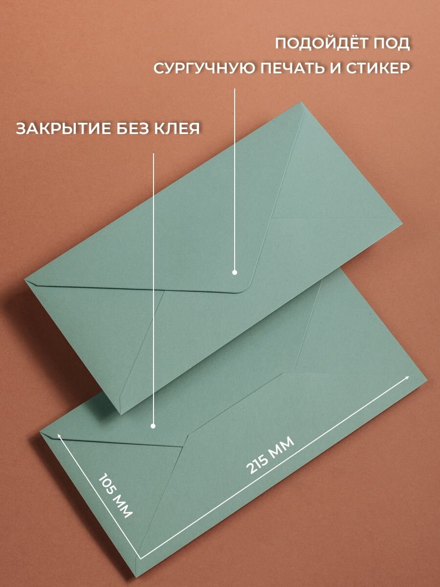 Набор конвертов для денег Е65 (110х220мм)/ Конверты подарочные из дизайнерской бумаги нефритовый 10 шт.