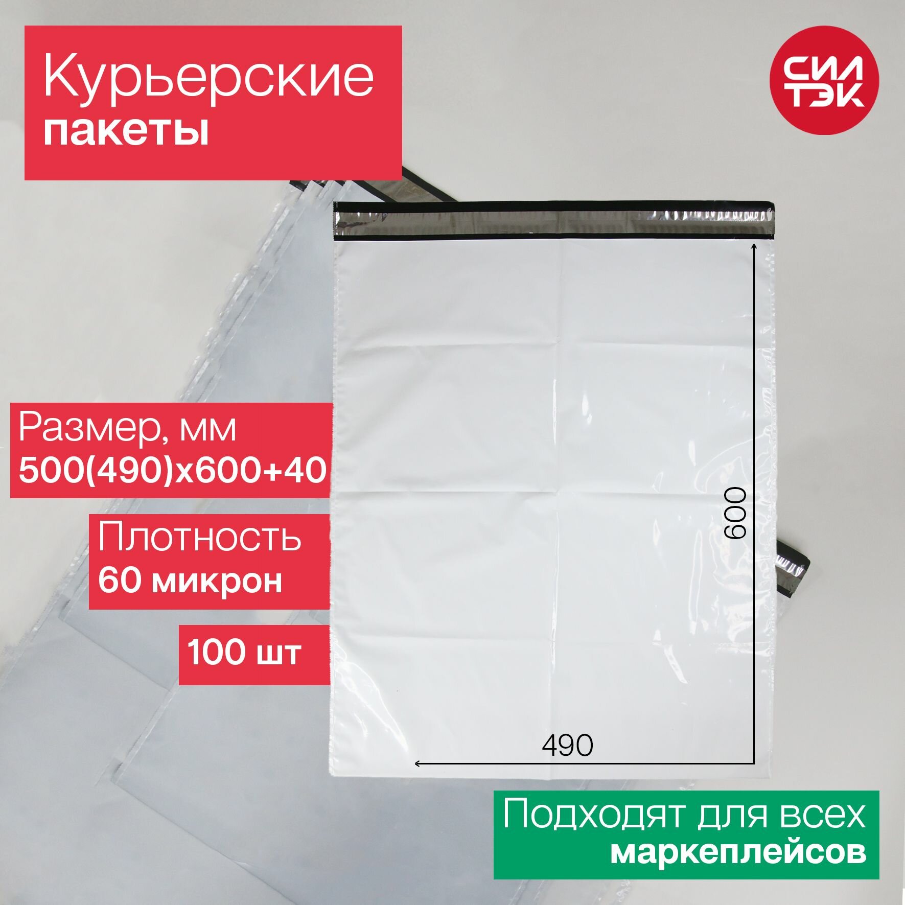 Купить Курьерский пакет 500(490)х600+40 мм 60 мкм 100 шт.