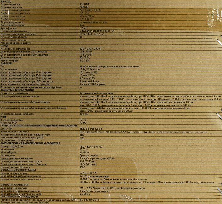 | Особенности | автоматический By-pass / звуковая сигнализация / поддержка SNMP |