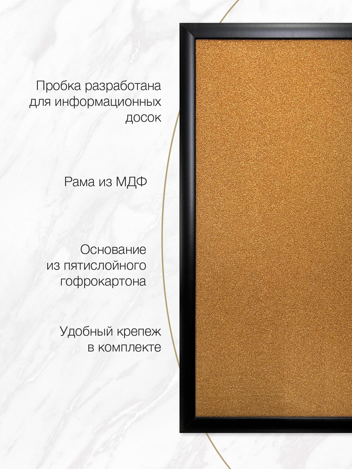 | Комплектация | Доска пробковая в раме, крепление, набор кнопок, коробка картонная |