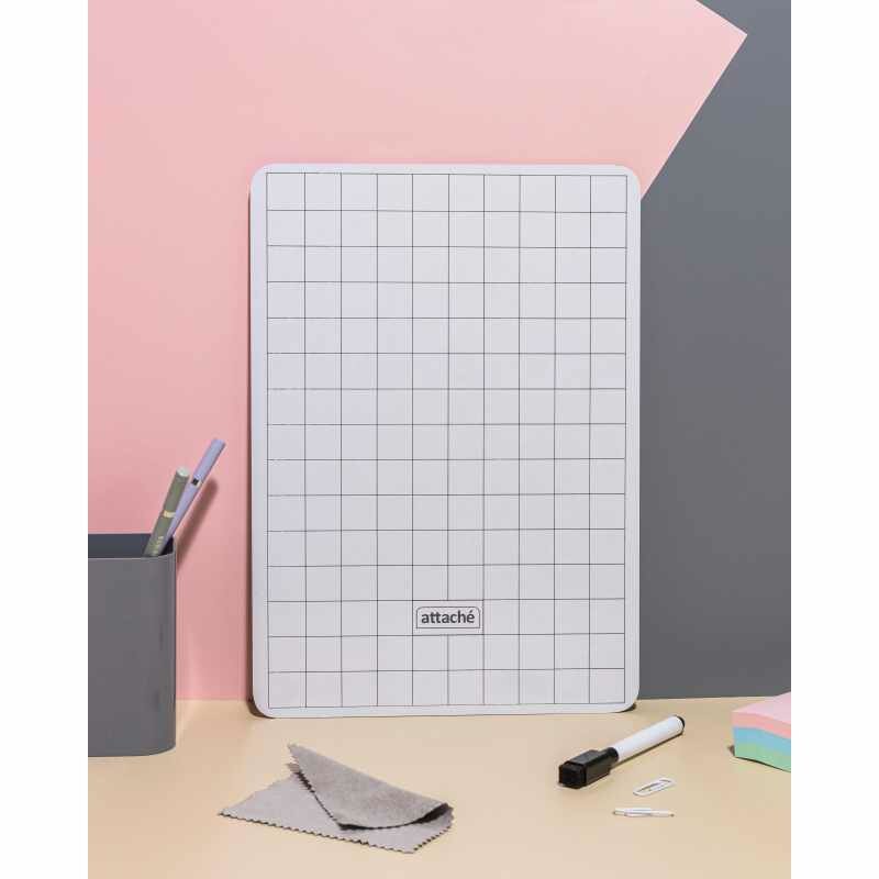 Купить Доска двусторонняя маркерная Attache А4 белый/клетка+ маркер+салфетка