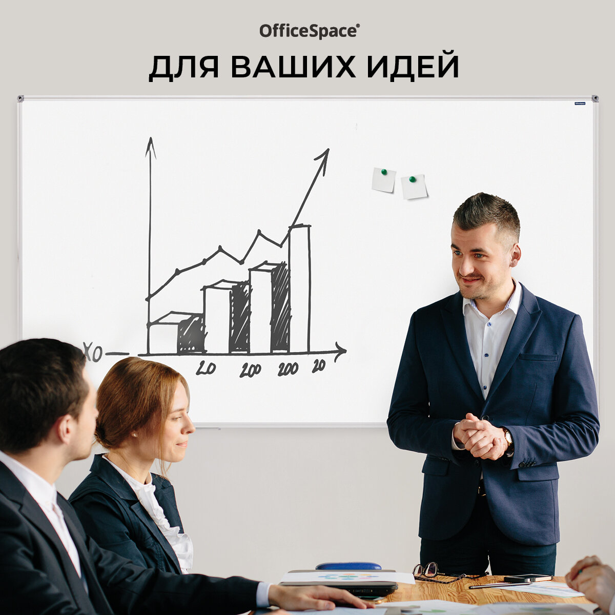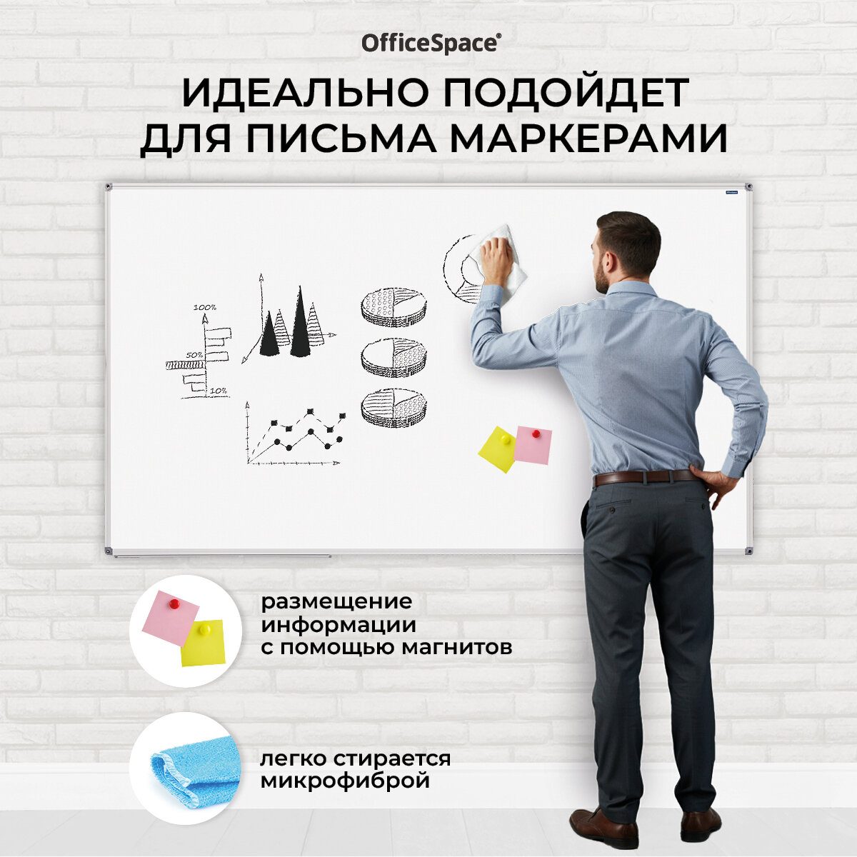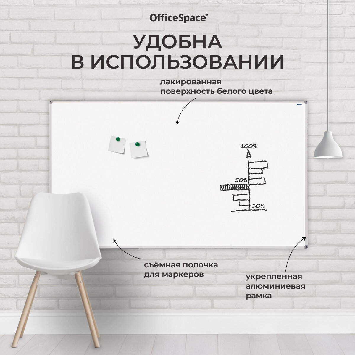 Доска магнитно-маркерная OfficeSpace, 100*180 см, алюминиевая рамка, полочка интересное: