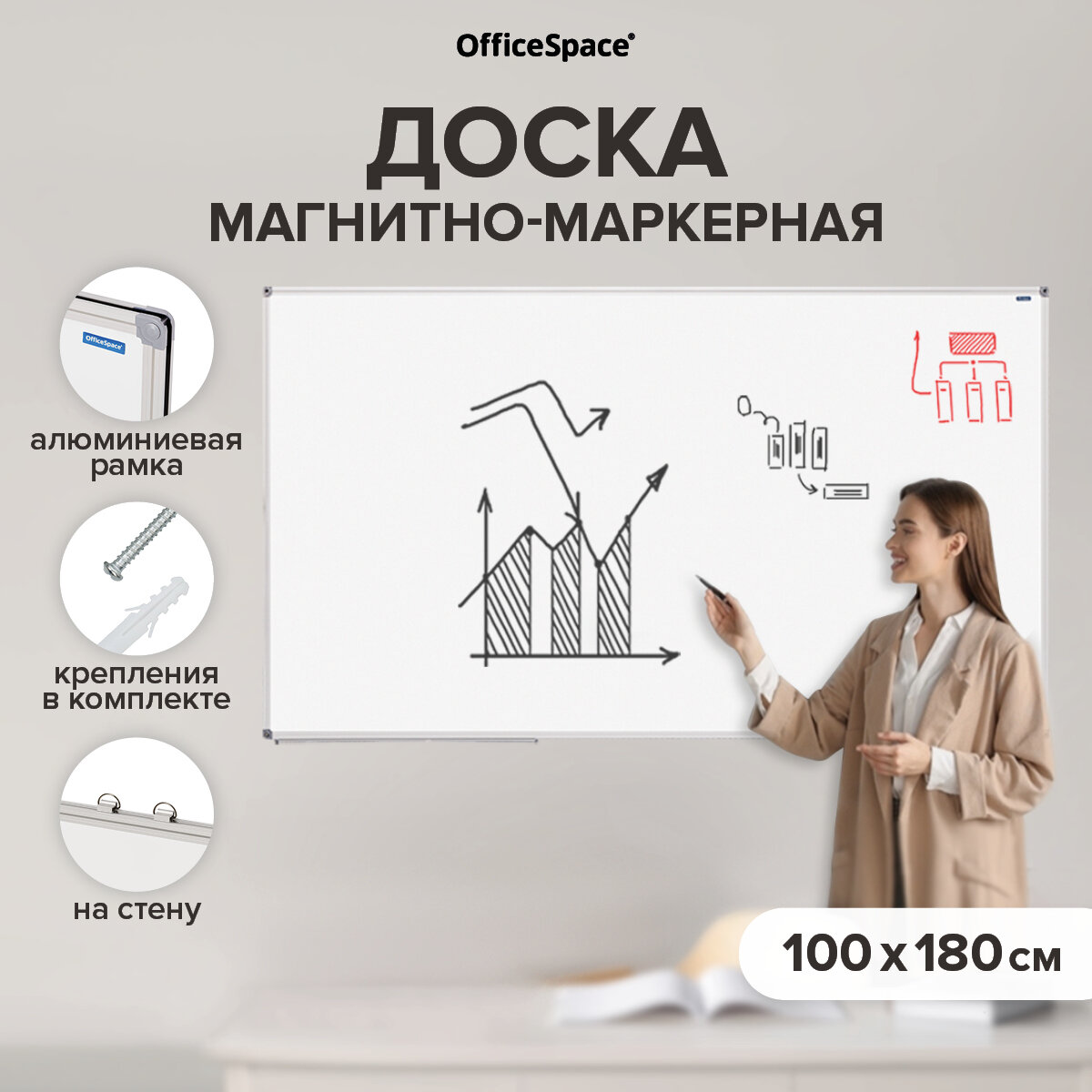 Купить Доска магнитно-маркерная OfficeSpace, 100*180 см, алюминиевая рамка, полочка