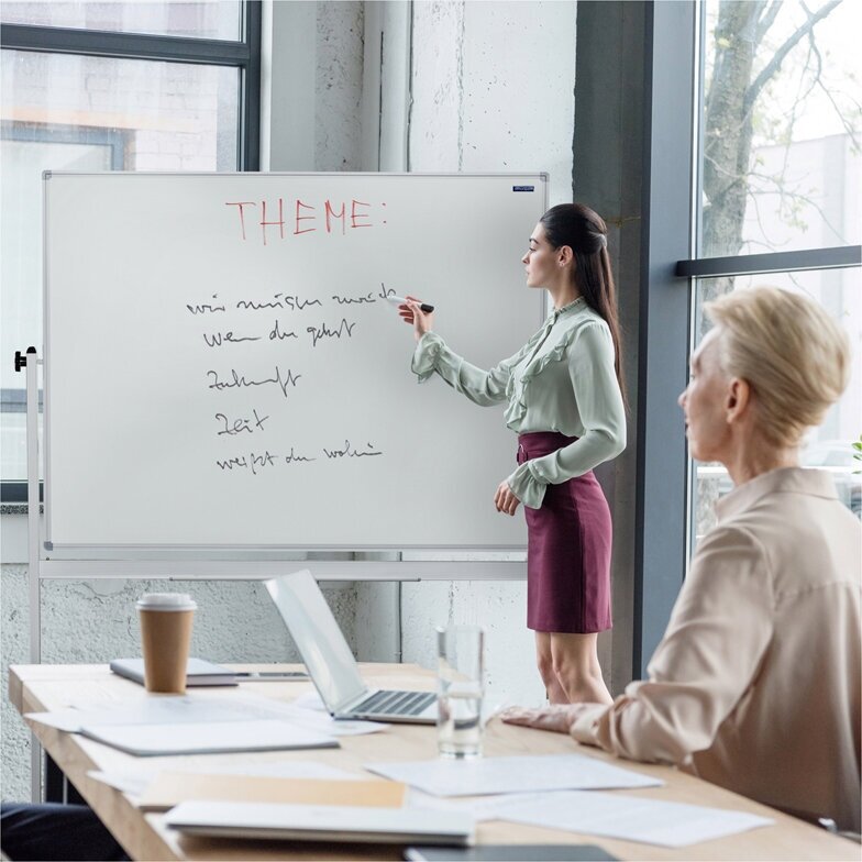 Купить Доска магнитно-маркерная OfficeSpace, 90*120см, двустронняя, поворотная, мобильная, алюминиевый профиль