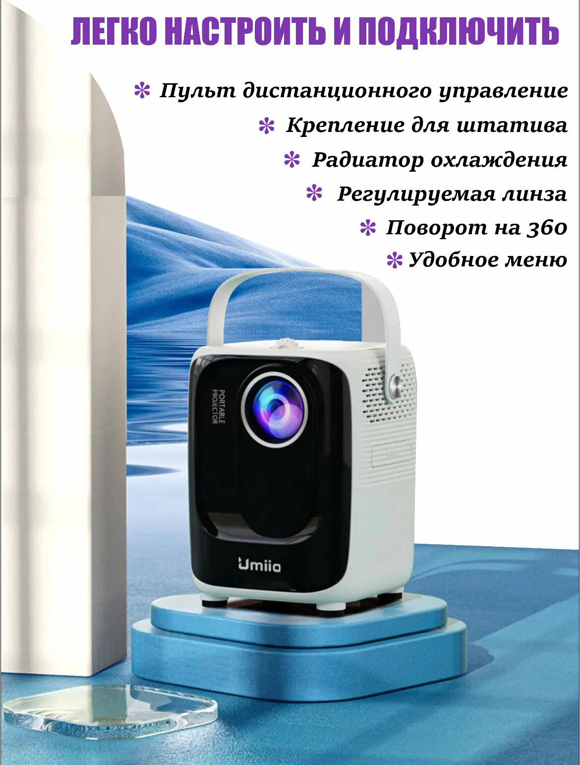Проектор Umiio/Портативный проектор/ Мини проектор Umiio Full HD/белый интересное: