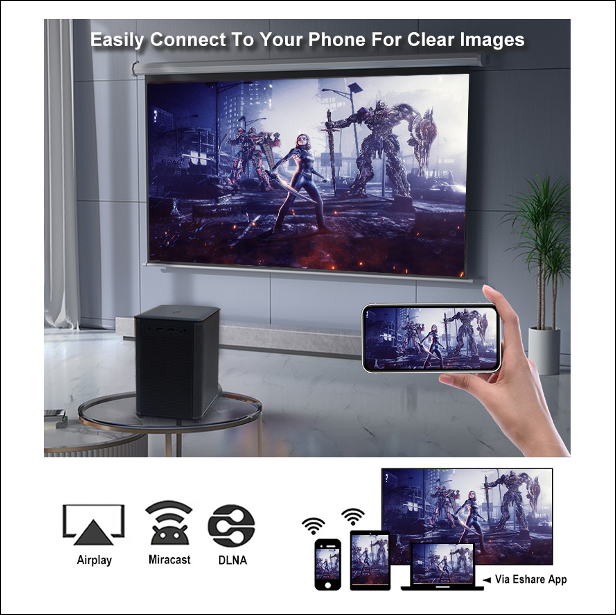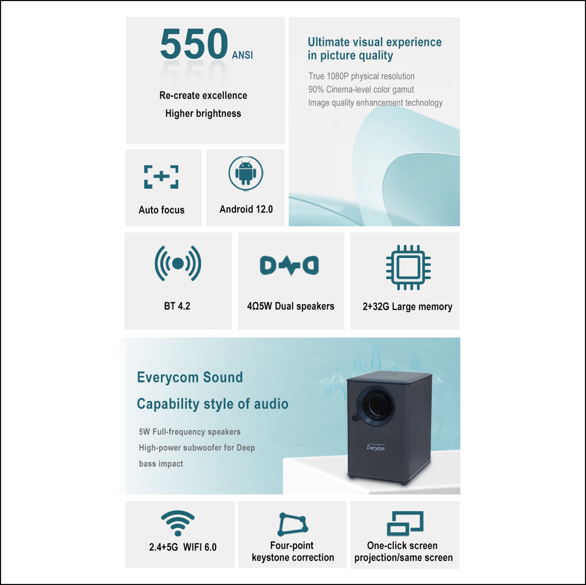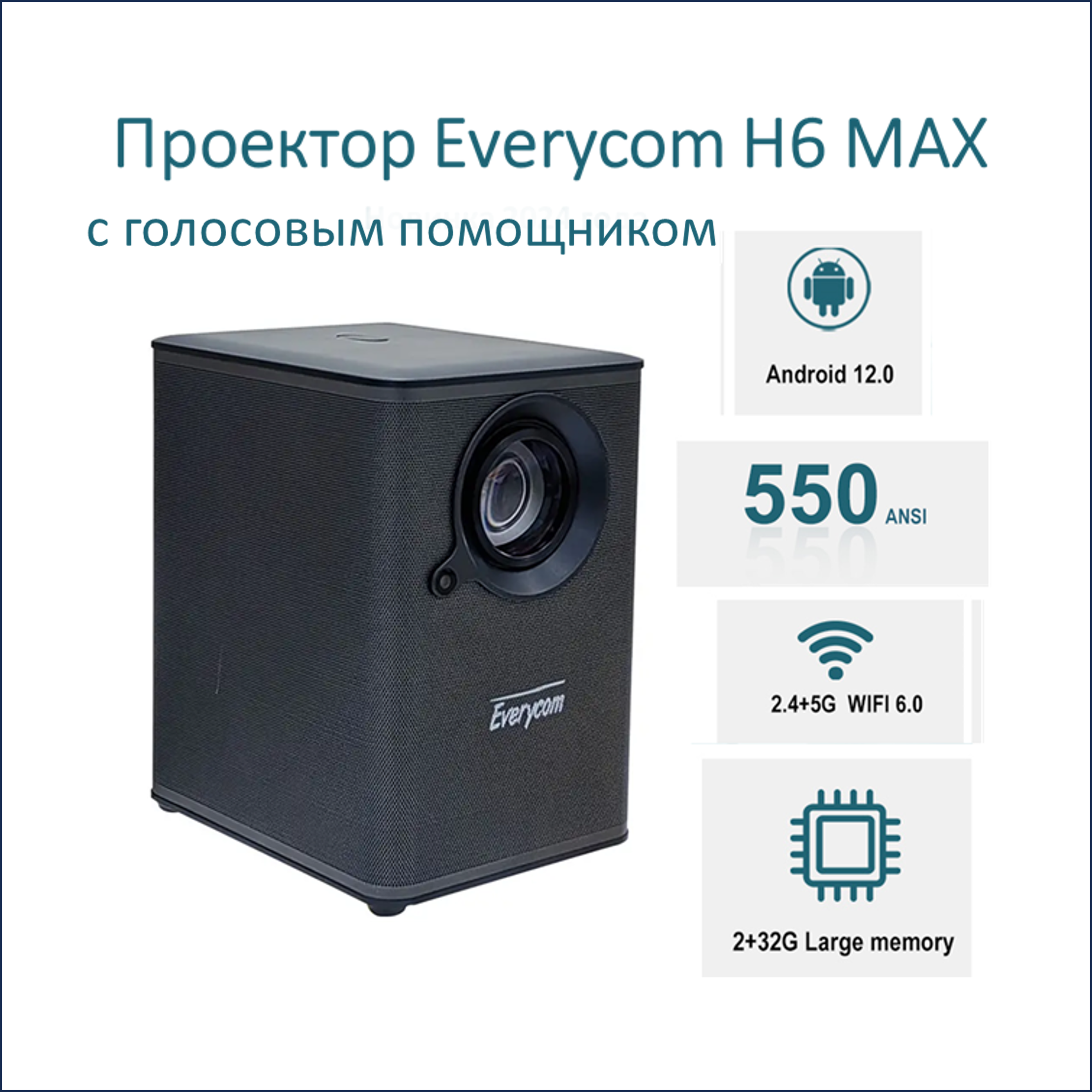 Купить Видеопроектор Everycom H6 MAX ( версия 2024 года), Андроид 12.0, память 2/32 Gb, 550 ANSI люменов