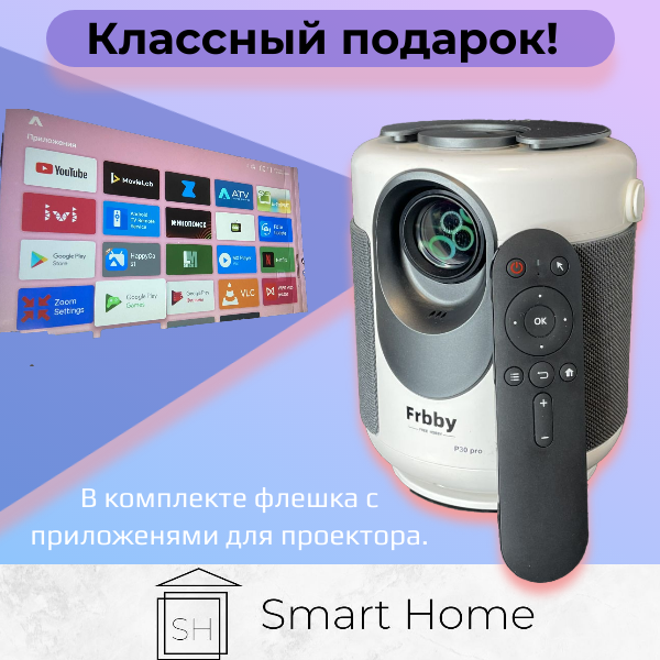 Проектор для дачи Frbby P30 pro Белый (2 поколение) + Бесплатные кинотеатры и ТВ интересное: