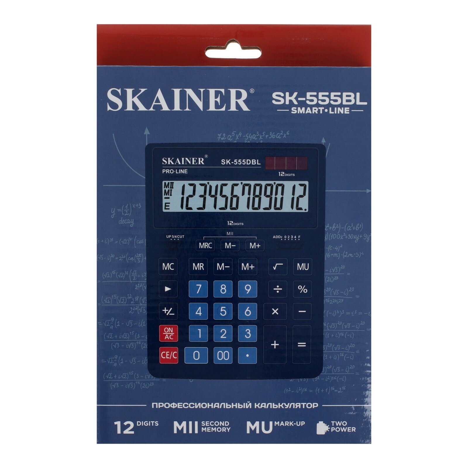 | Подробная комплектация | SK-555RD боль. наст. кальк. (пл., 12 разрд., 2 пит., 2 пам., крас. 155 x 205 x 35 мм) |