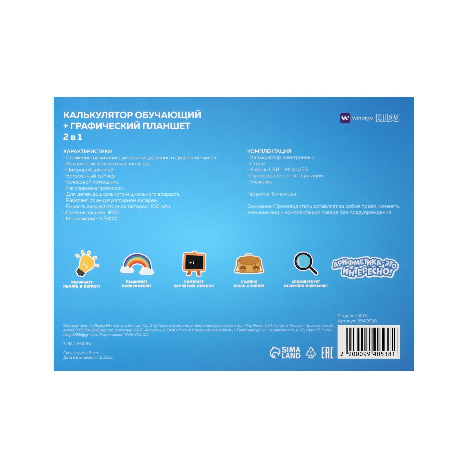 Купить Интерактивный калькулятор детский Windigo, для изучения счёта + графический планшет, голубой