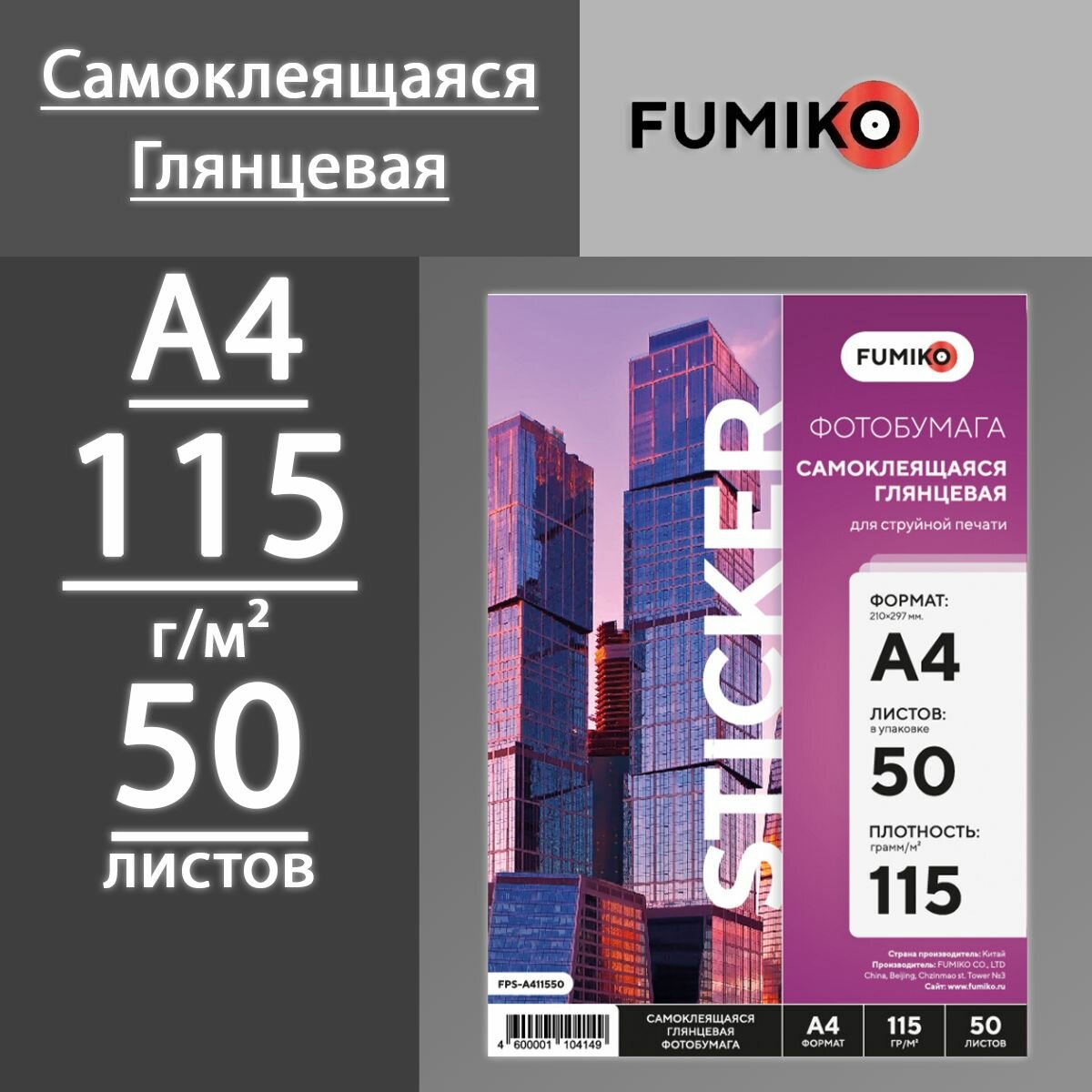 Фотобумага FUMIKO самоклеящаяся глянцевая, 115 г, А4, 50 листов