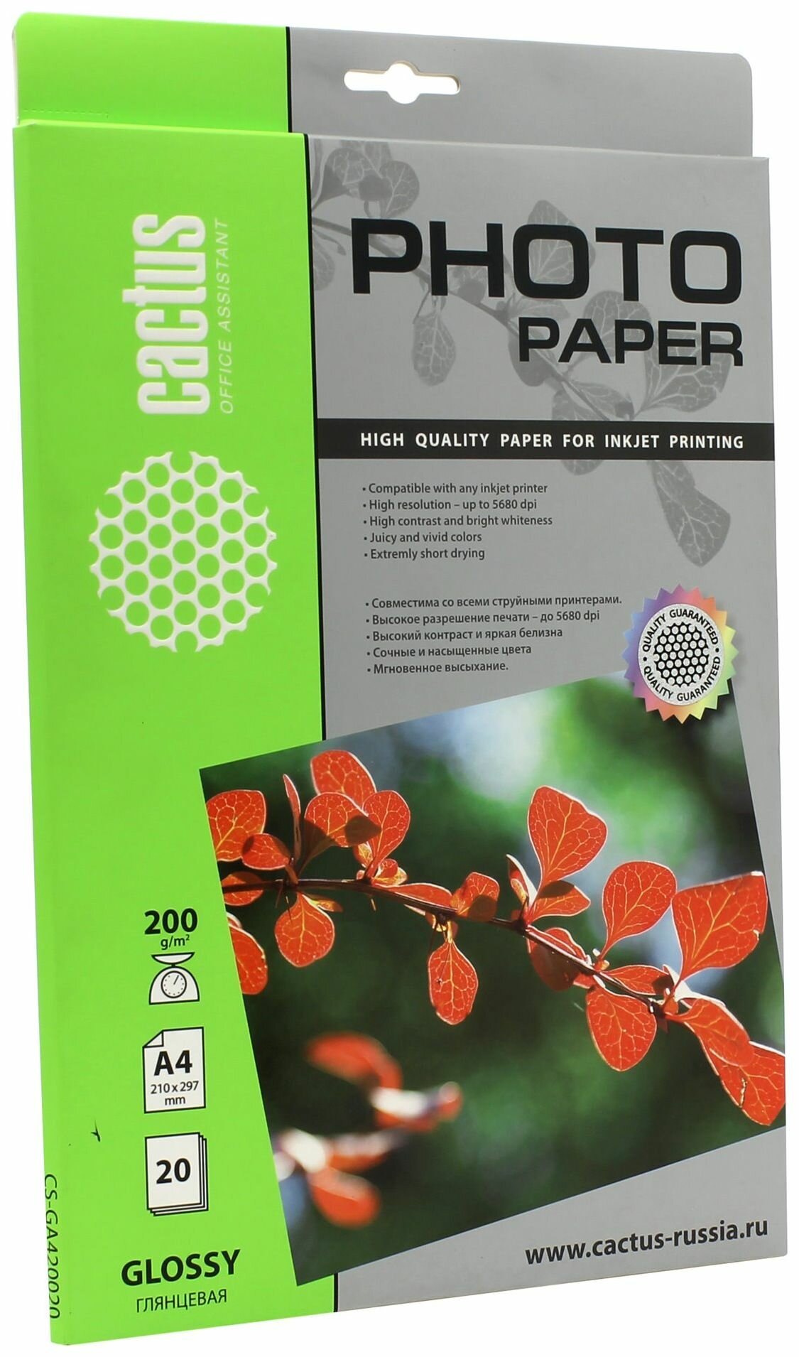 Фотобумага A4 200г/м2 20л Cactus CS-GA420020 Глянцевая интересное: