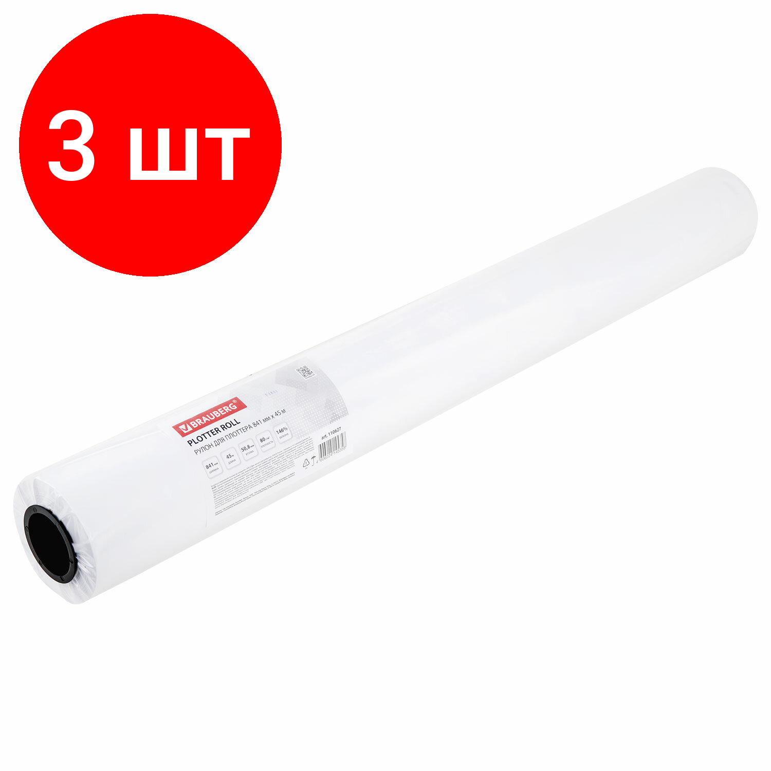 Купить Комплект 3 шт, Рулон для плоттера, 841 мм х 45 м х втулка 50.8 мм, 80 г/м2, белизна CIE 146%, BRAUBERG, 110627