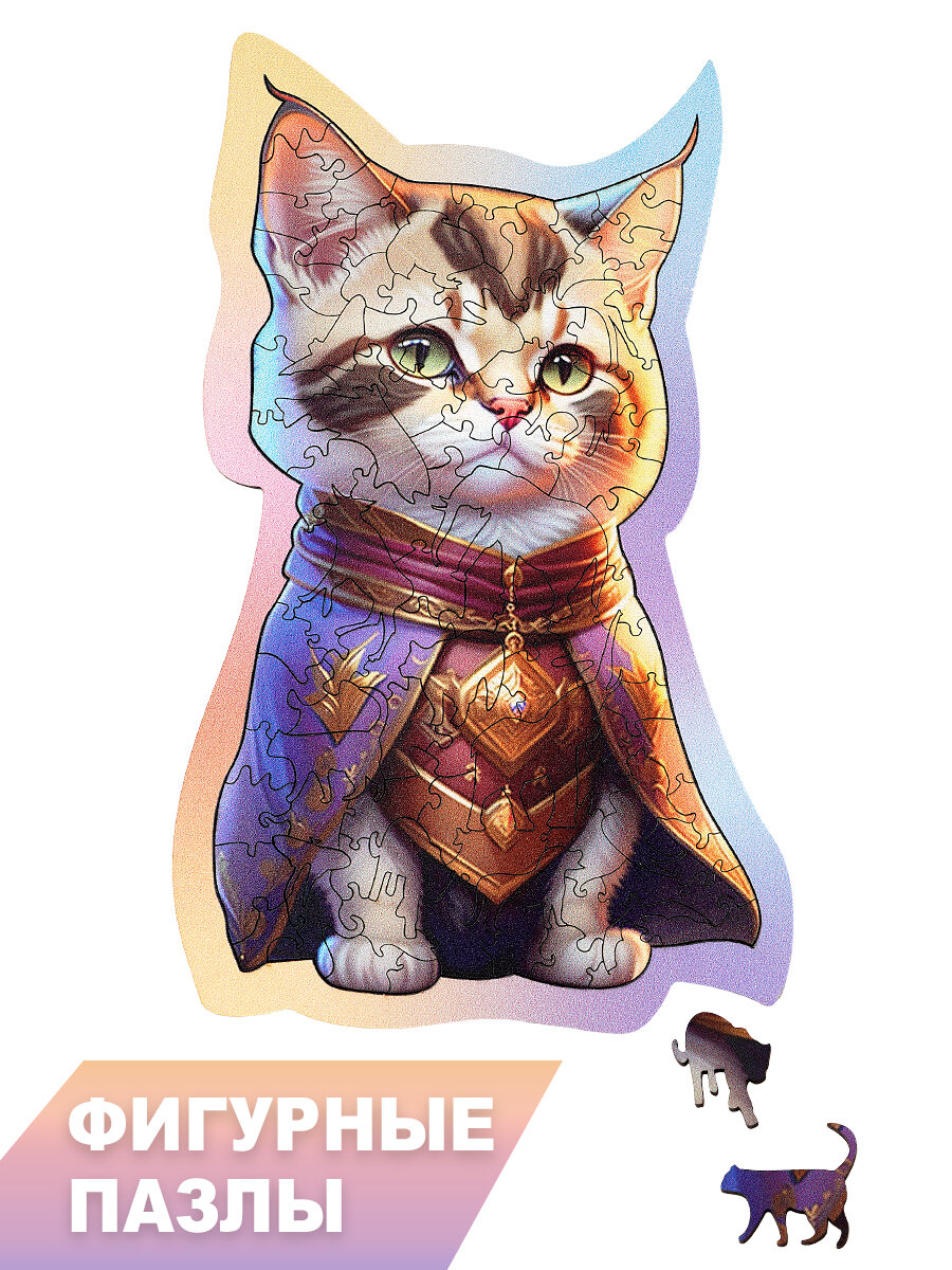 Купить Пазл деревянный фигурный объемный киска цветная 100 элементов в форме животных для детей и взрослых PuzzleHome