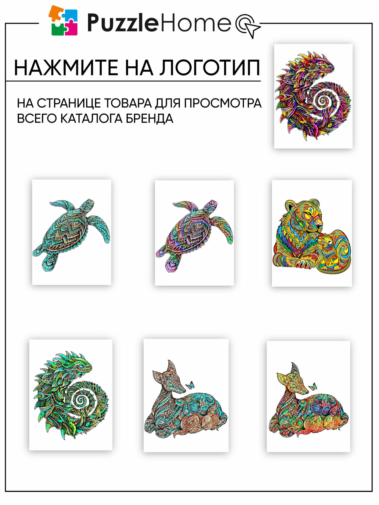 Пазл деревянный фигурный объемный 100 элементов в форме животных для детей и взрослых PuzzleHome на подложке