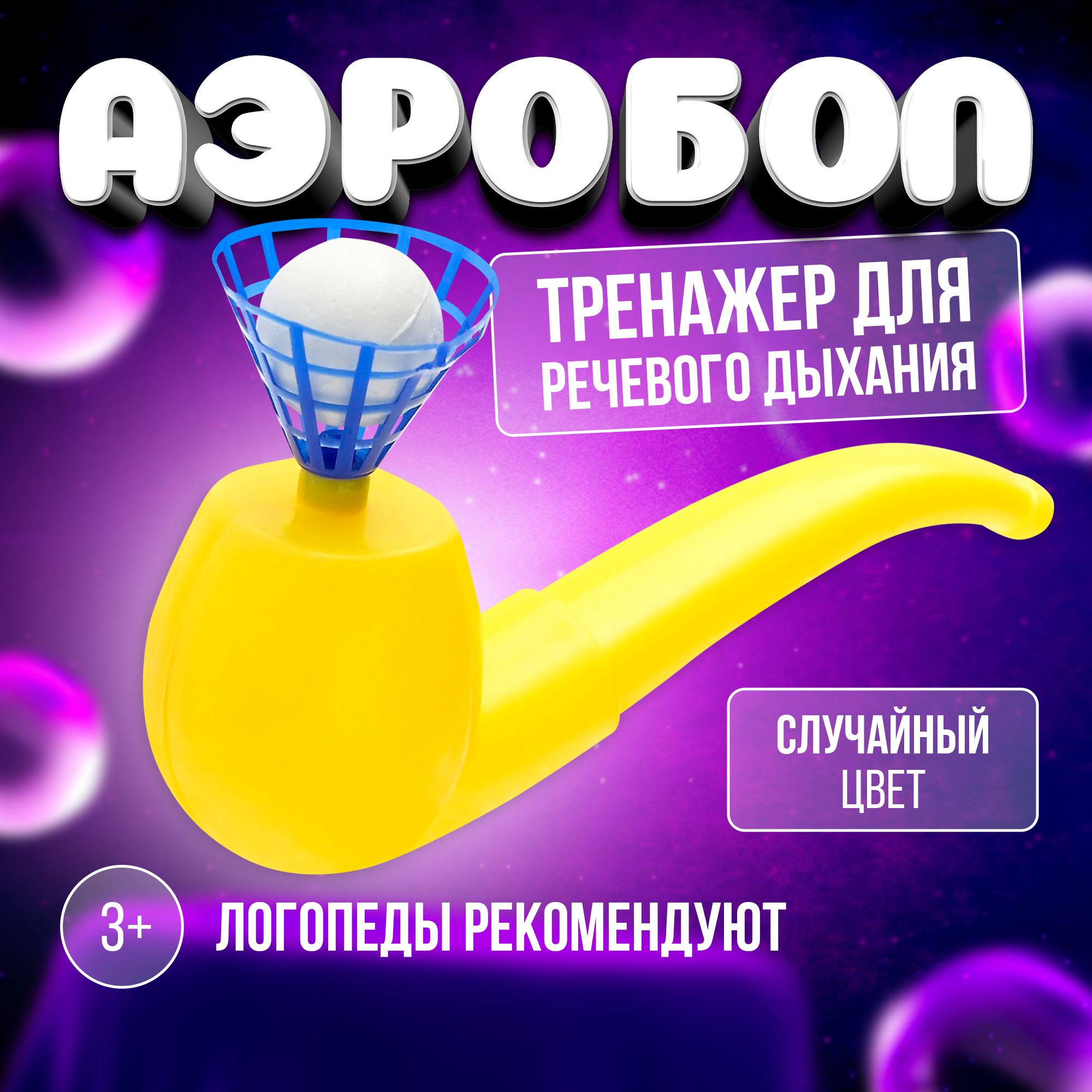Логопедическая обучающая игра-тренажёр "Аэробол", для развития речевого дыхания, цвет микс