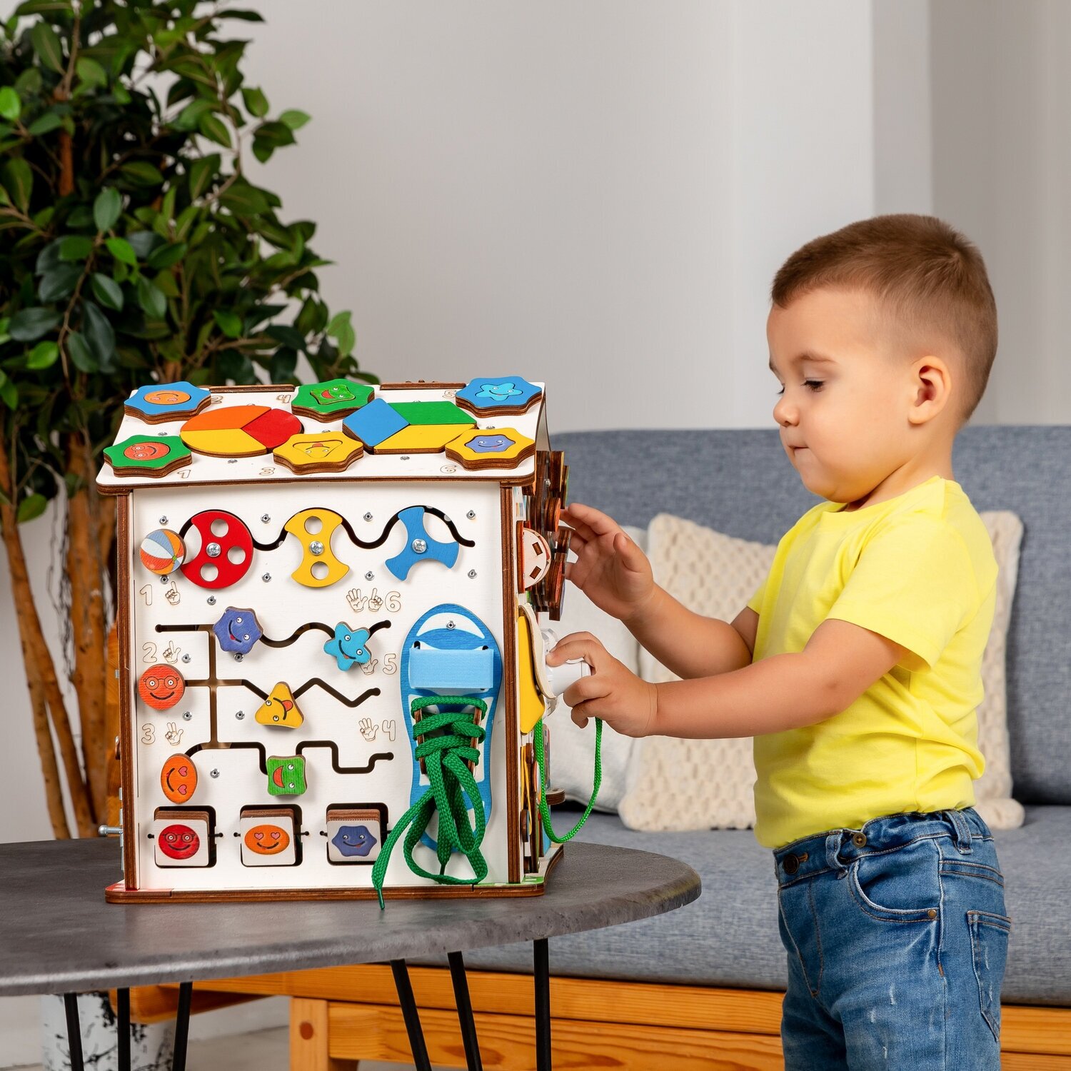Бизиборд развивающий домик 29х36 см со светом, , развивающая игрушка бизидом