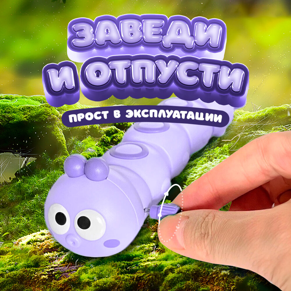 Купить Детская заводная игрушка развивающая интерактивная для малышей мальчиков и девочек для ребенка до 1 2 года гусеница фиолетовая