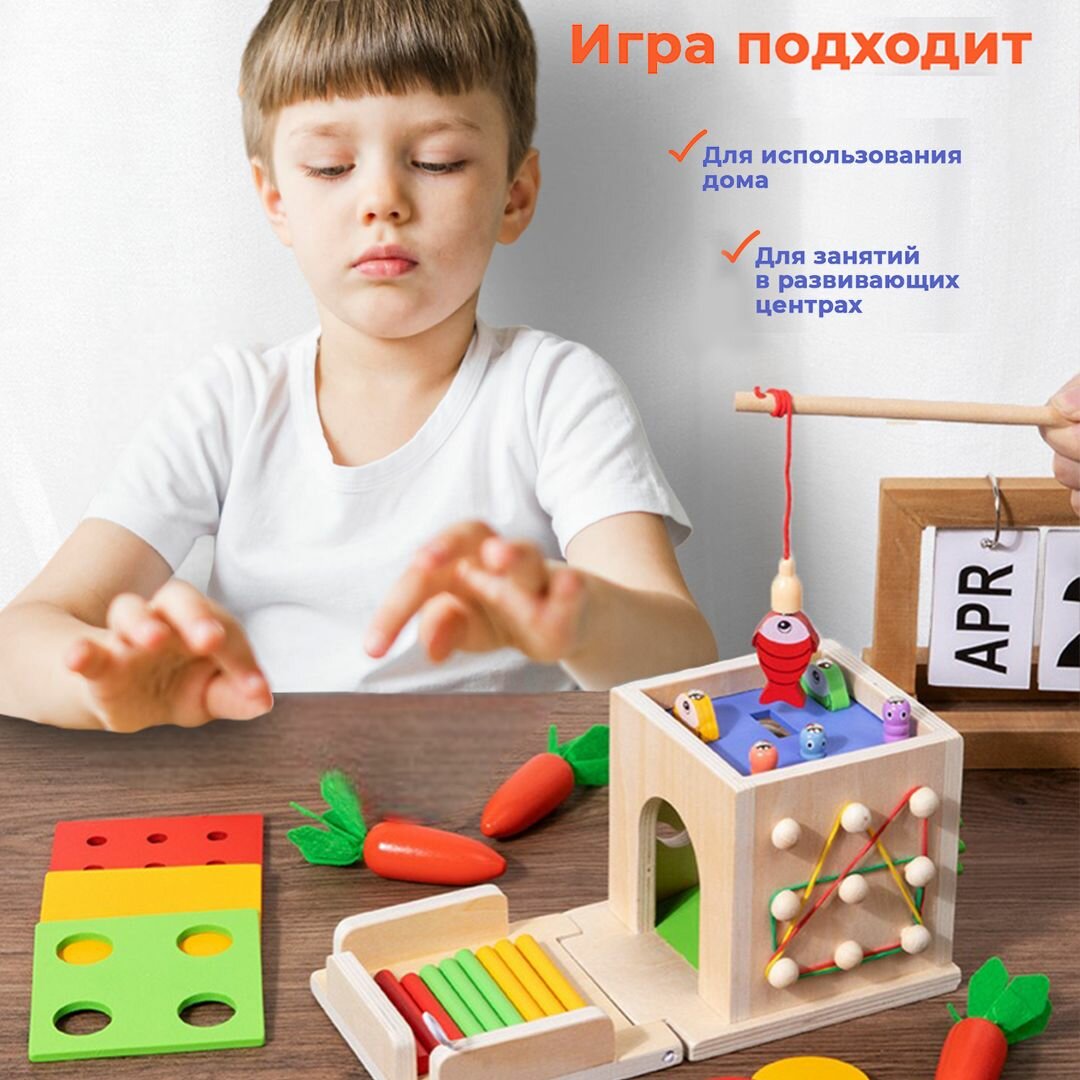 Сортер для малышей LUCHINA toys Монтессори набор 7в1 из дерева для развития моторики Обучающая ,развивающая игра интересное: