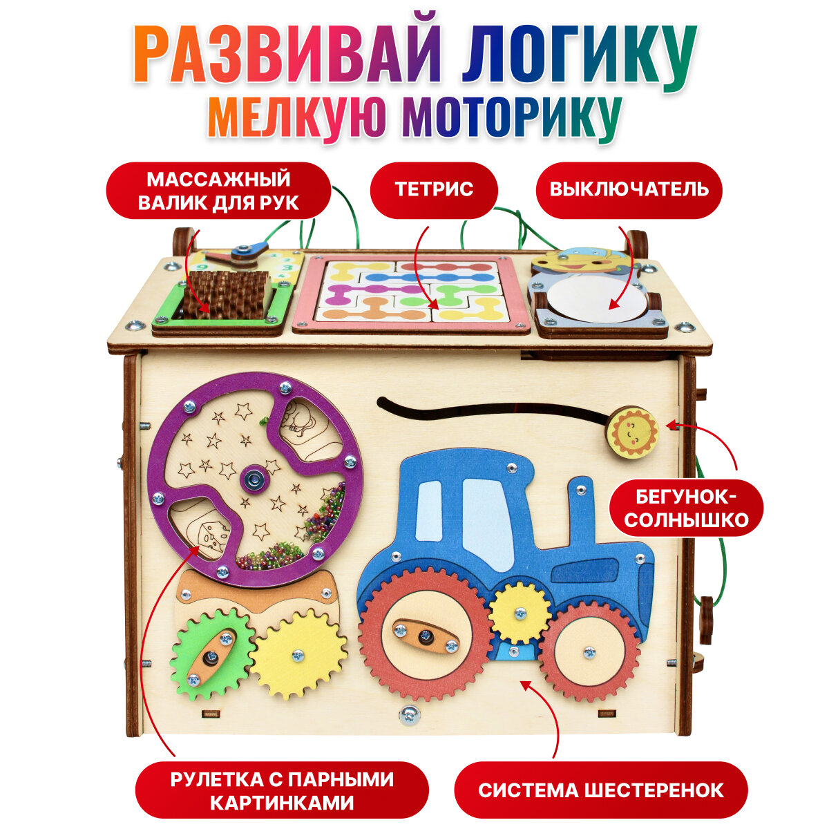 | Развивающие функции | бытовые и социальные навыки / изучение геометрических фигур / изучение цветов / интерес к наукам / коммуникативные навыки / координация и равновесие / логика и мышление / моторика и ловкость / память и внимание / счет и математика / творческое мышление / эрудиция |
