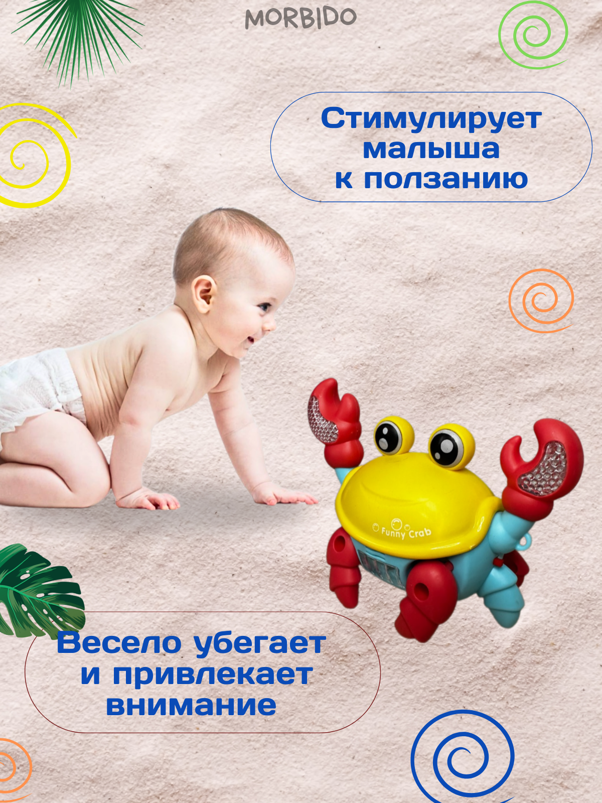 Электронная развивающая интерактивная игрушка краб, бегающий, музыкальный, шагающий, на батарейках желтый/ красный/ зеленый