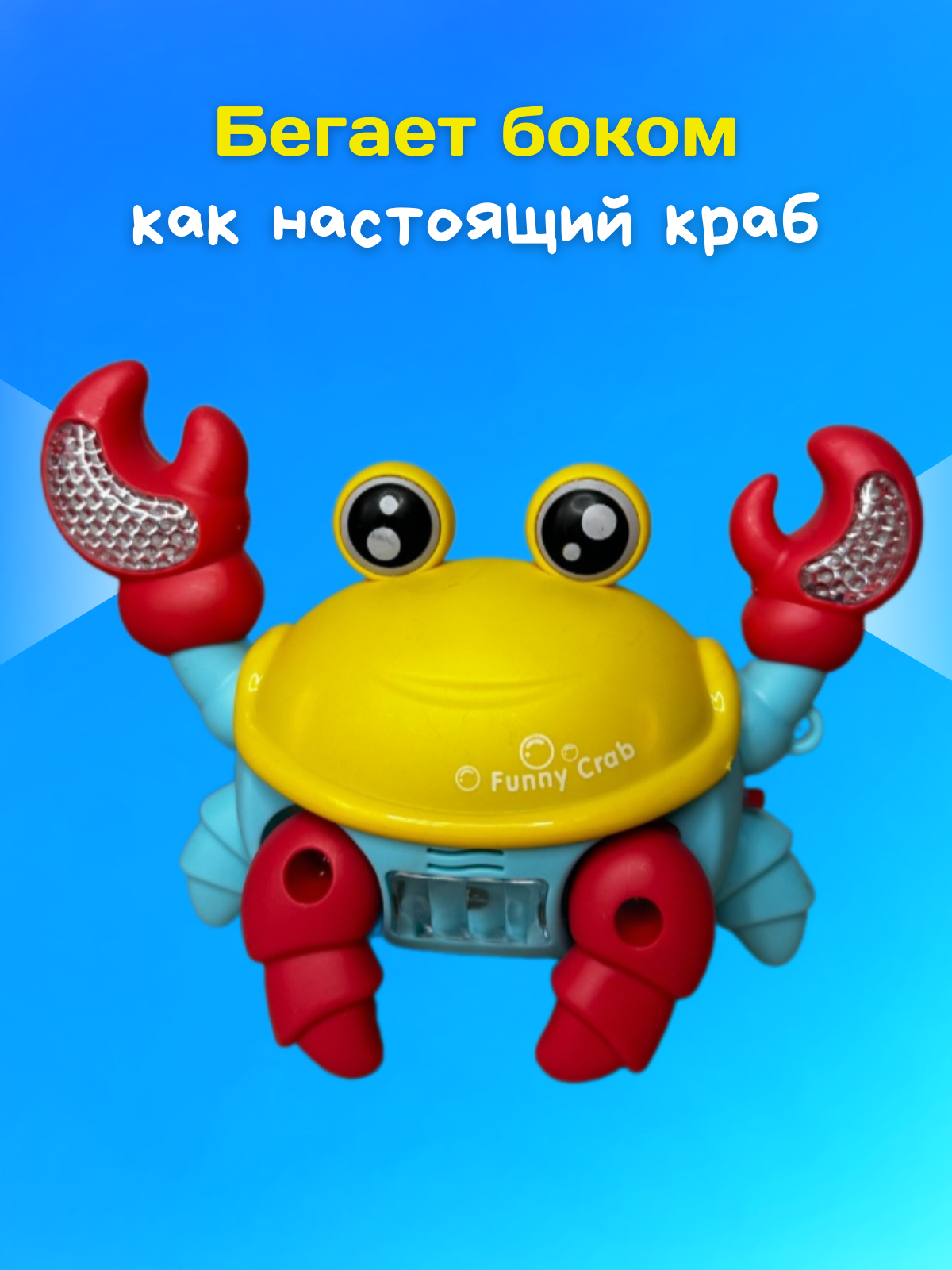 СохранитьЭлектронная развивающая интерактивная игрушка краб, бегающий, музыкальный, шагающий, на батарейках желтый / голубой интересное: