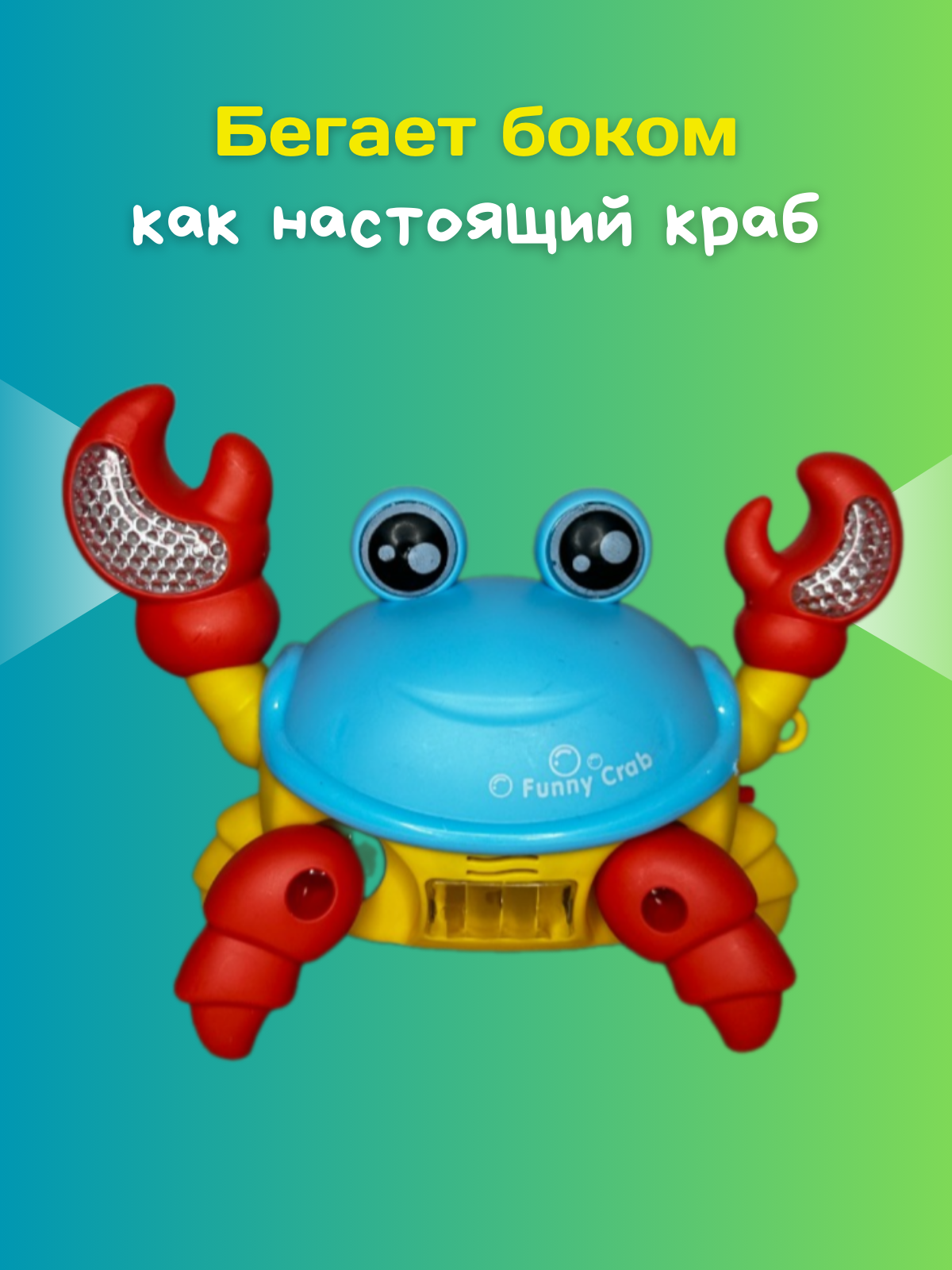 СохранитьЭлектронная развивающая интерактивная игрушка краб, бегающий, музыкальный, шагающий, на батарейках голубой / желтый интересное: