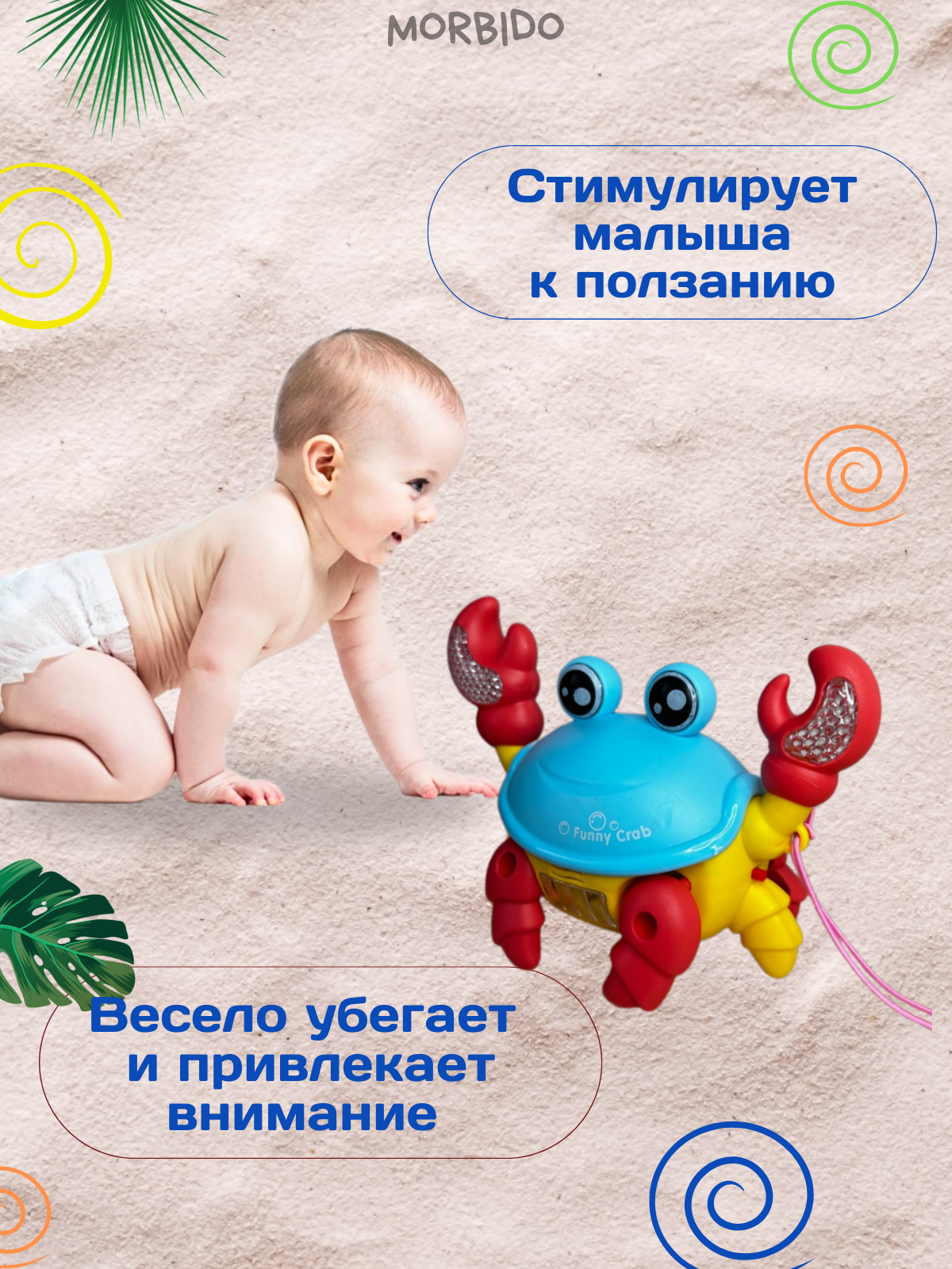 Электронная развивающая интерактивная игрушка краб, бегающий, музыкальный, шагающий, на батарейках