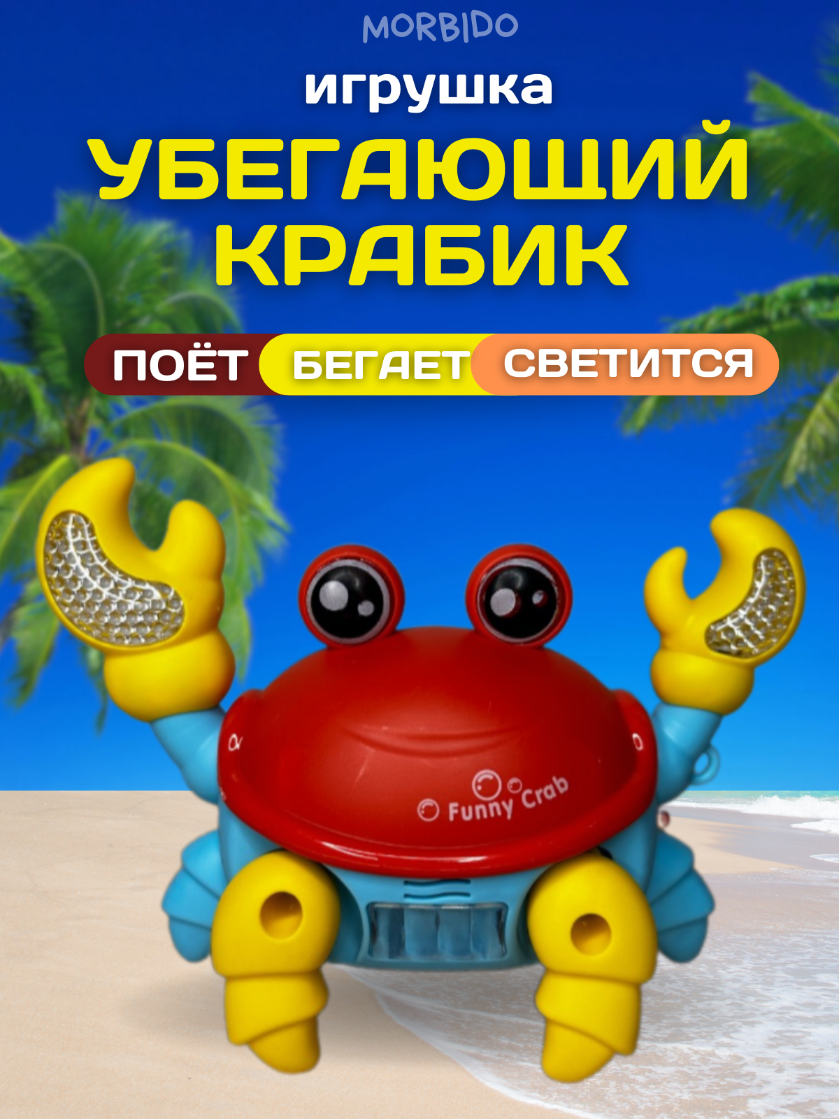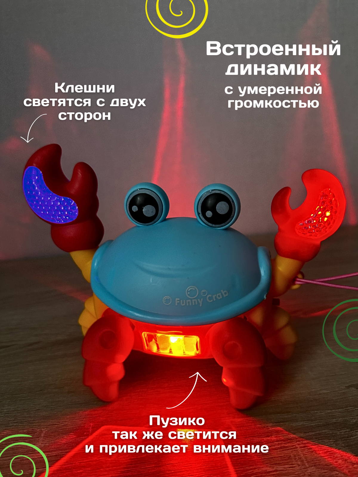 Электронная развивающая интерактивная игрушка краб, бегающий, музыкальный, шагающий, на батарейках желтый/ красный/ зеленый