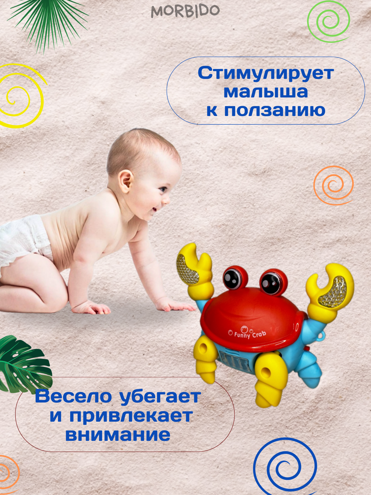 Электронная развивающая интерактивная игрушка краб, бегающий, музыкальный, шагающий, на батарейках