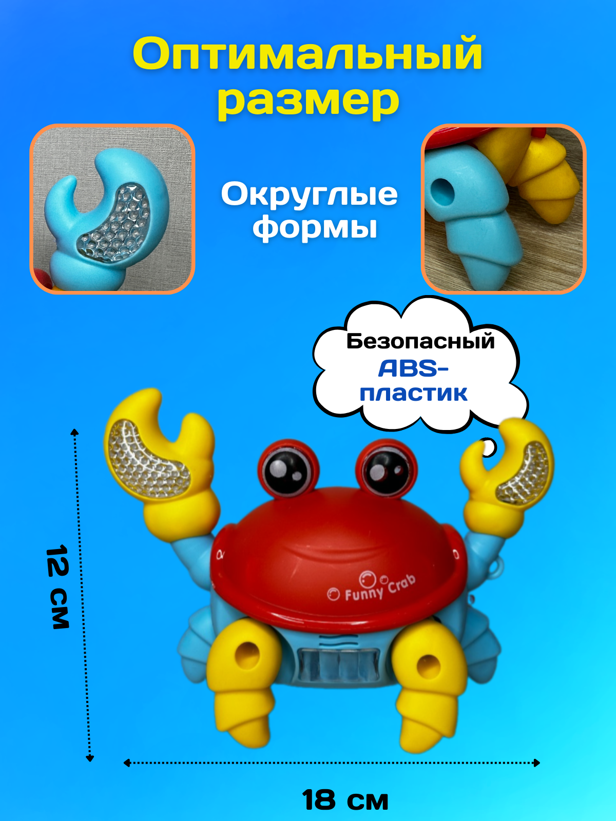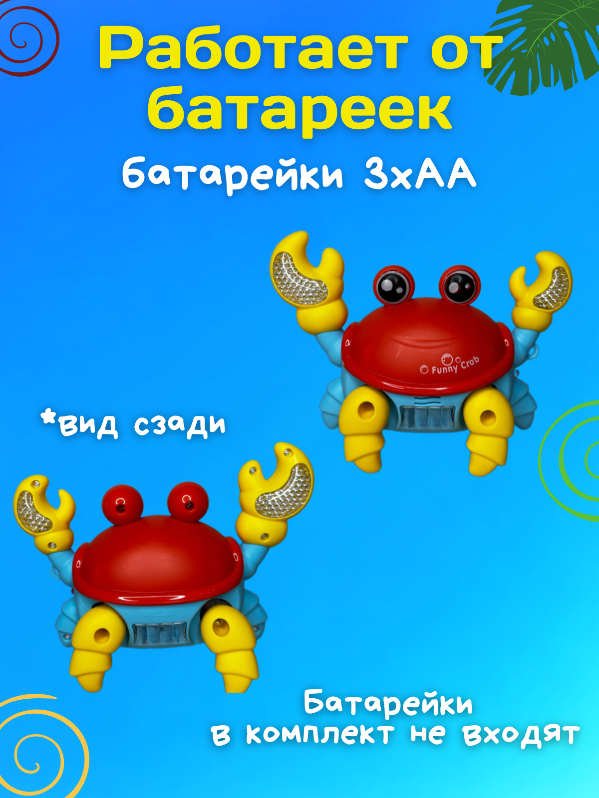 СохранитьЭлектронная развивающая интерактивная игрушка краб, бегающий, музыкальный, шагающий, на батарейках красный / голубой интересное: