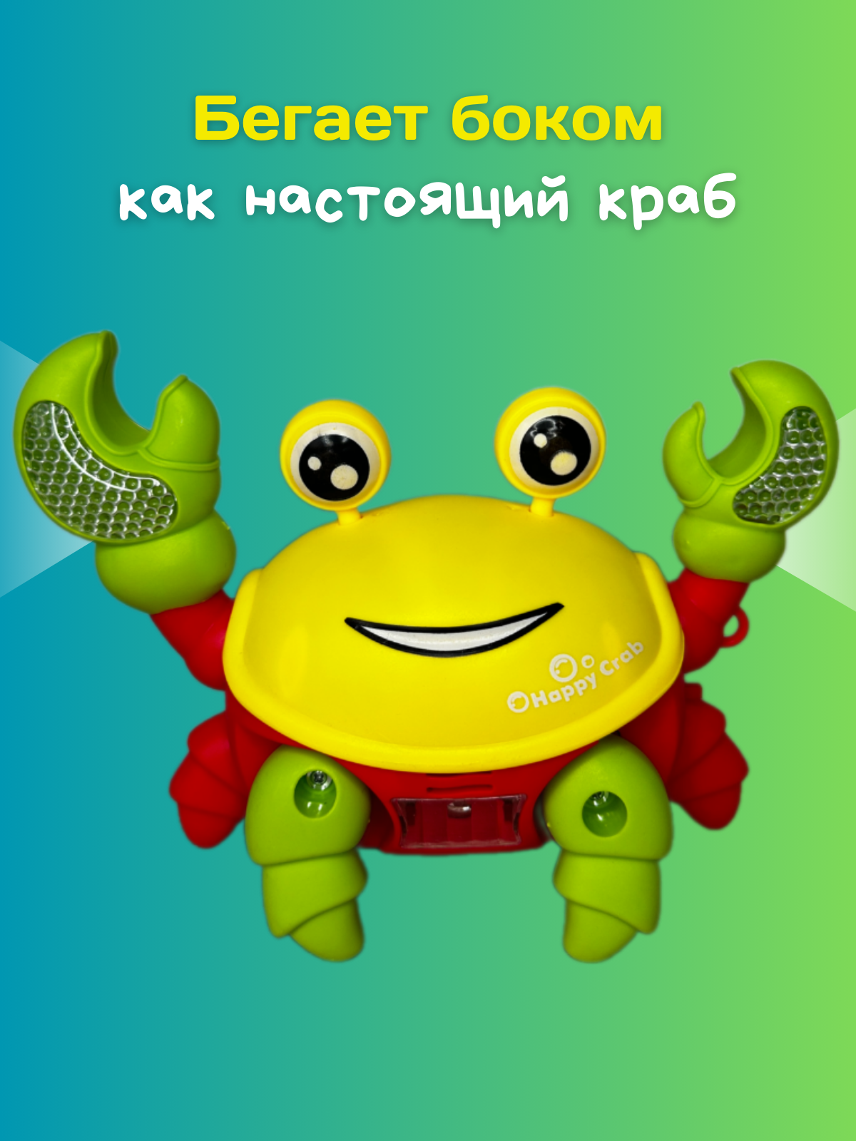 СохранитьЭлектронная развивающая интерактивная игрушка краб, бегающий, музыкальный, шагающий, на батарейках желтый/ красный/ зеленый интересное: