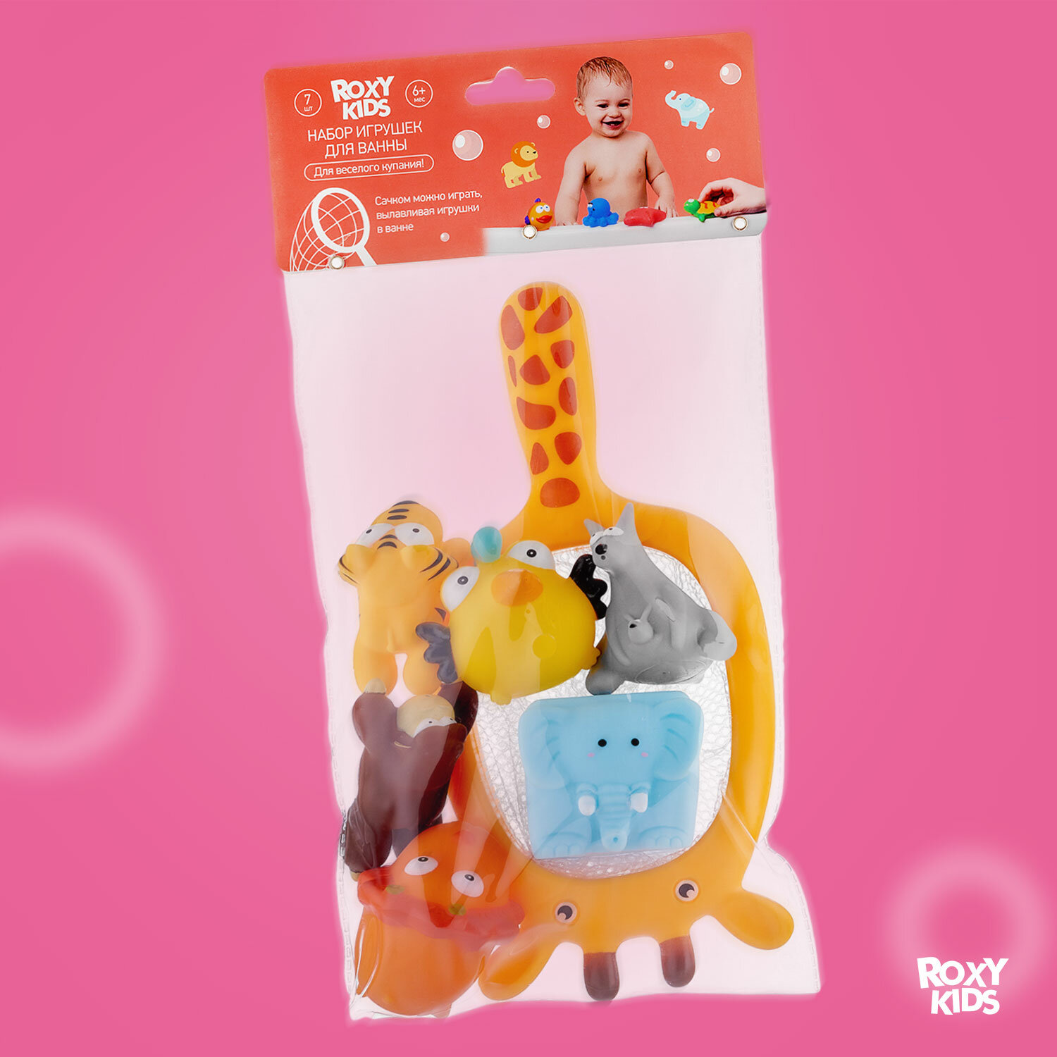 Игрушки для ванной Roxy-Kids Safari, с сачком, 6+1 шт. RRT-813