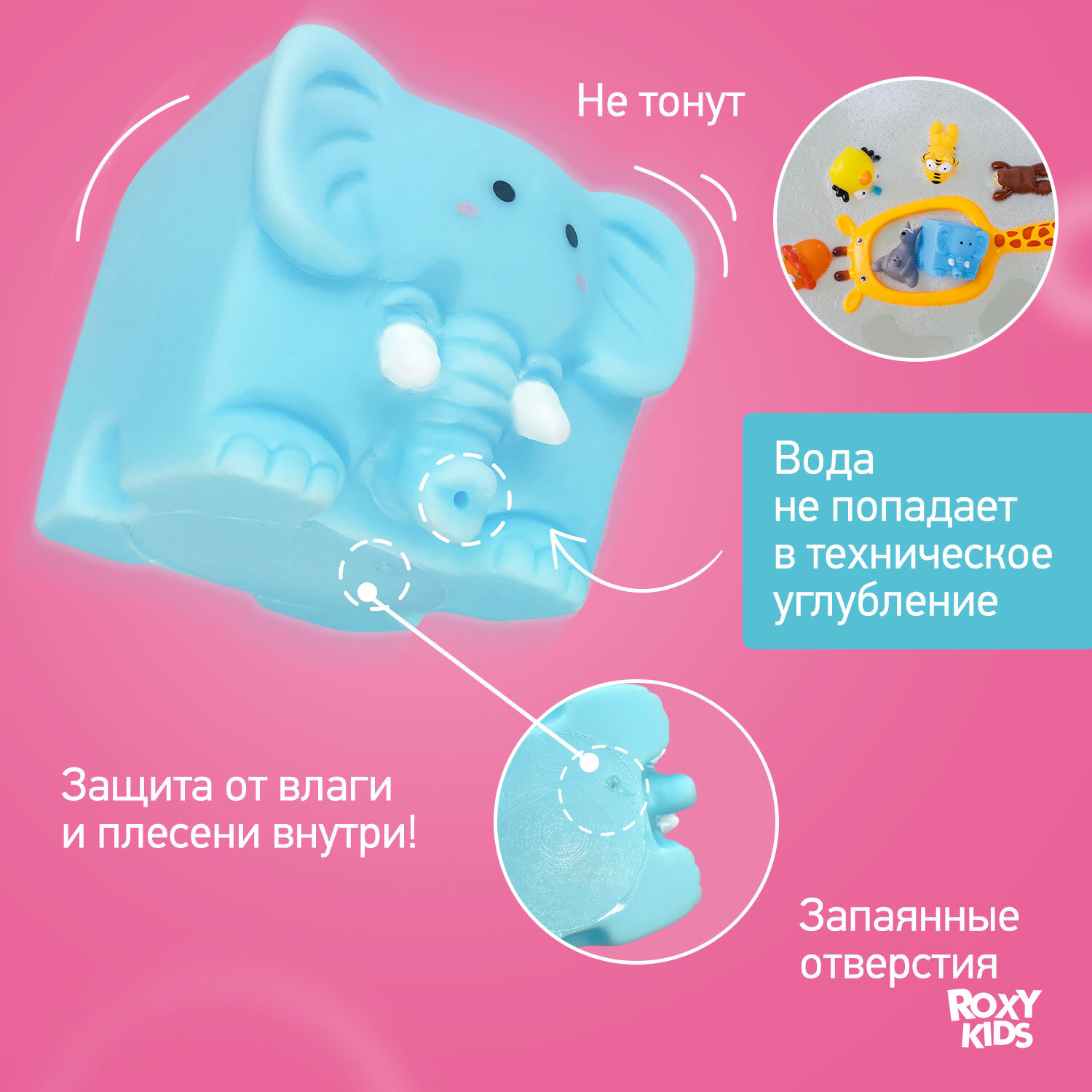 Набор игрушек для ванной ROXY KIDS "Сафари", ПВХ, безопасный, яркие цвета, для малышей