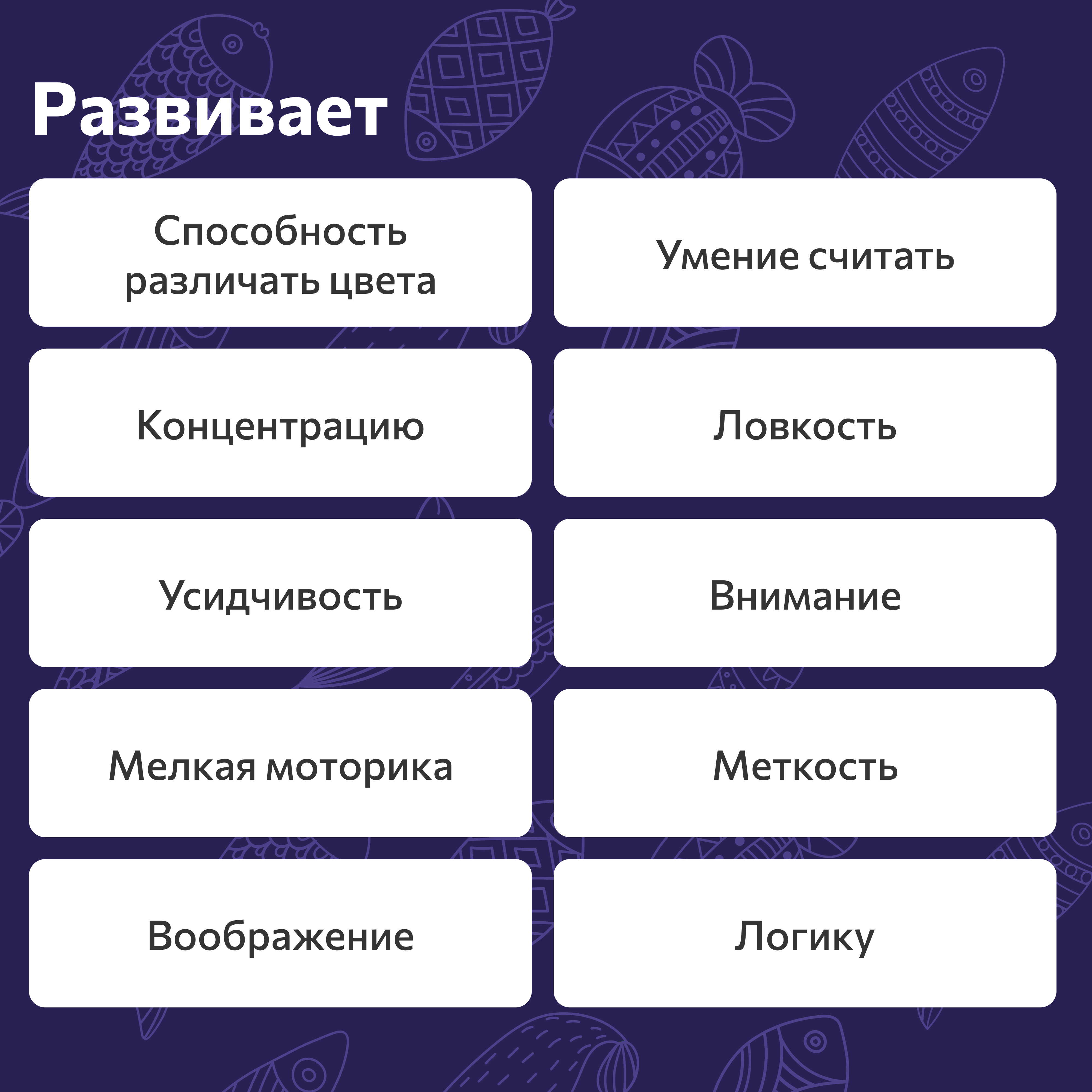 | Виды игрушек в комплекте | рыбка, сачок, сортер, удочка |