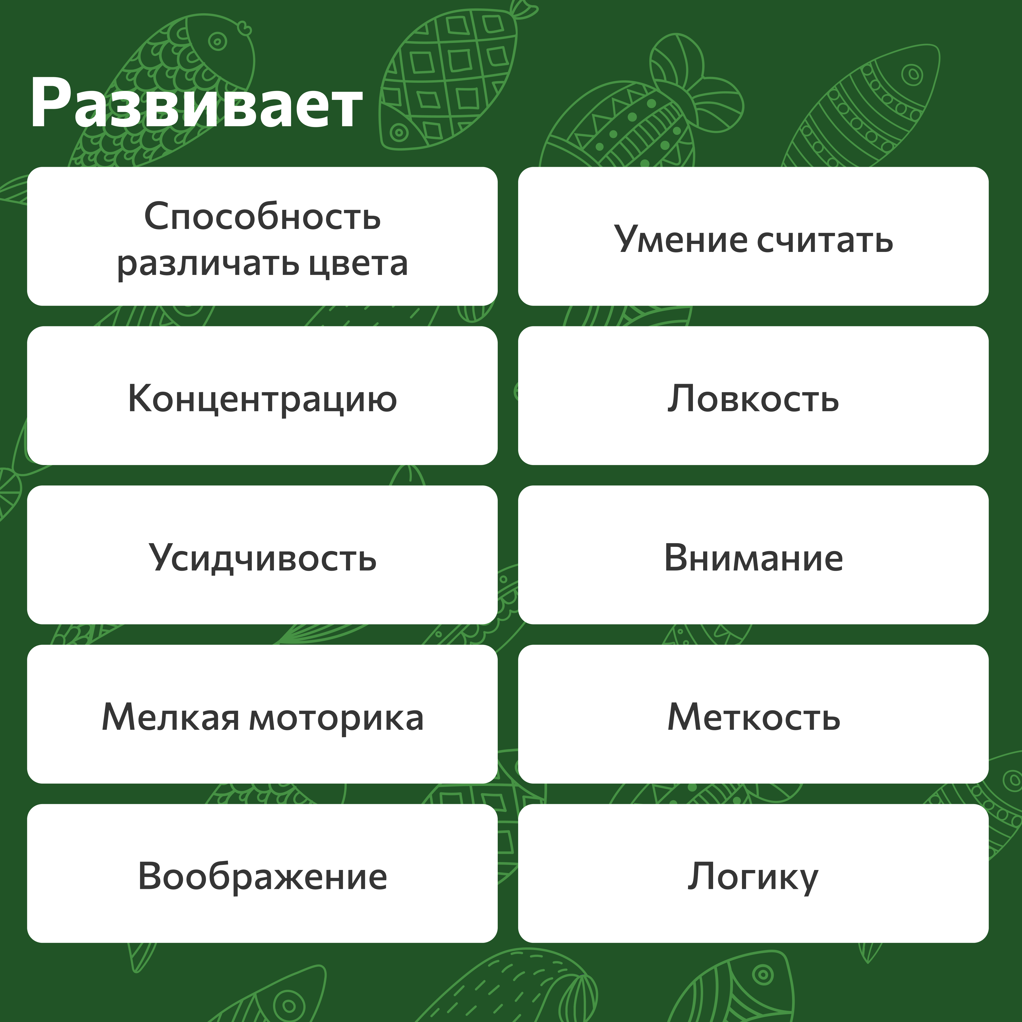 | Виды игрушек в комплекте | рыбка, сачок, сортер, удочка |